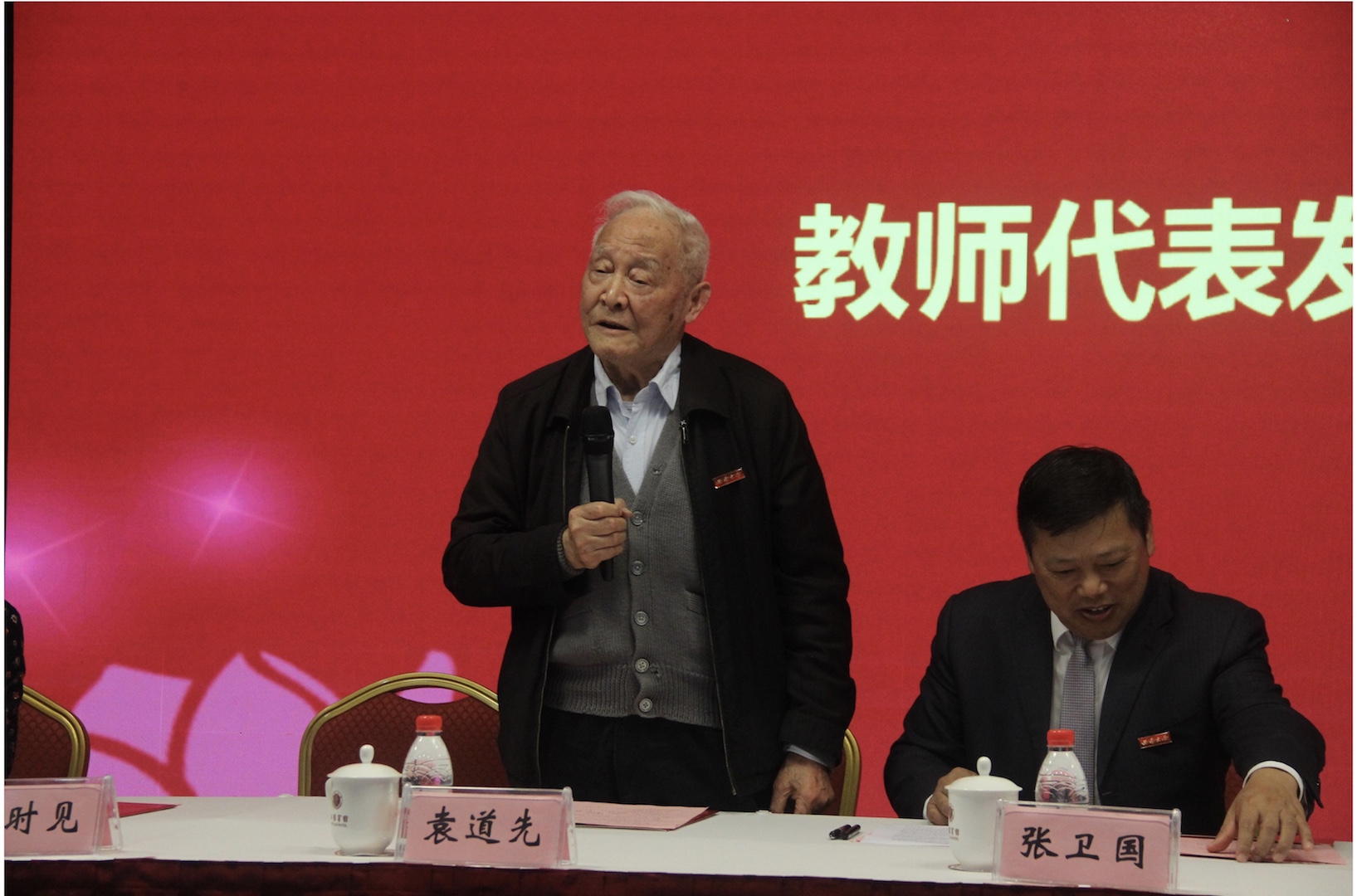 在学校教师代表发言环节,向仲怀院士提出做大学教师要志成高远、淡泊名利,弘扬科学精神、提高自我修养,坚守岗位、无私奉献,努力成长为学校和国家的栋梁之才。袁道先院士嘱托新进教师要把个人的奋斗与学校的发展紧密相连,为437ccm必赢国际官方网站做贡献,为437ccm必赢国际官方网站而骄傲。黄希庭教授告诫新进教师们教好书,好教书,将教学和科研结合在一起,同时积极锻炼身体,经营好自己的生活。赵伶俐教授寄语大学教师不断提升自己的教学水平和学术能力,追求高校教师之高,大学教师之大。