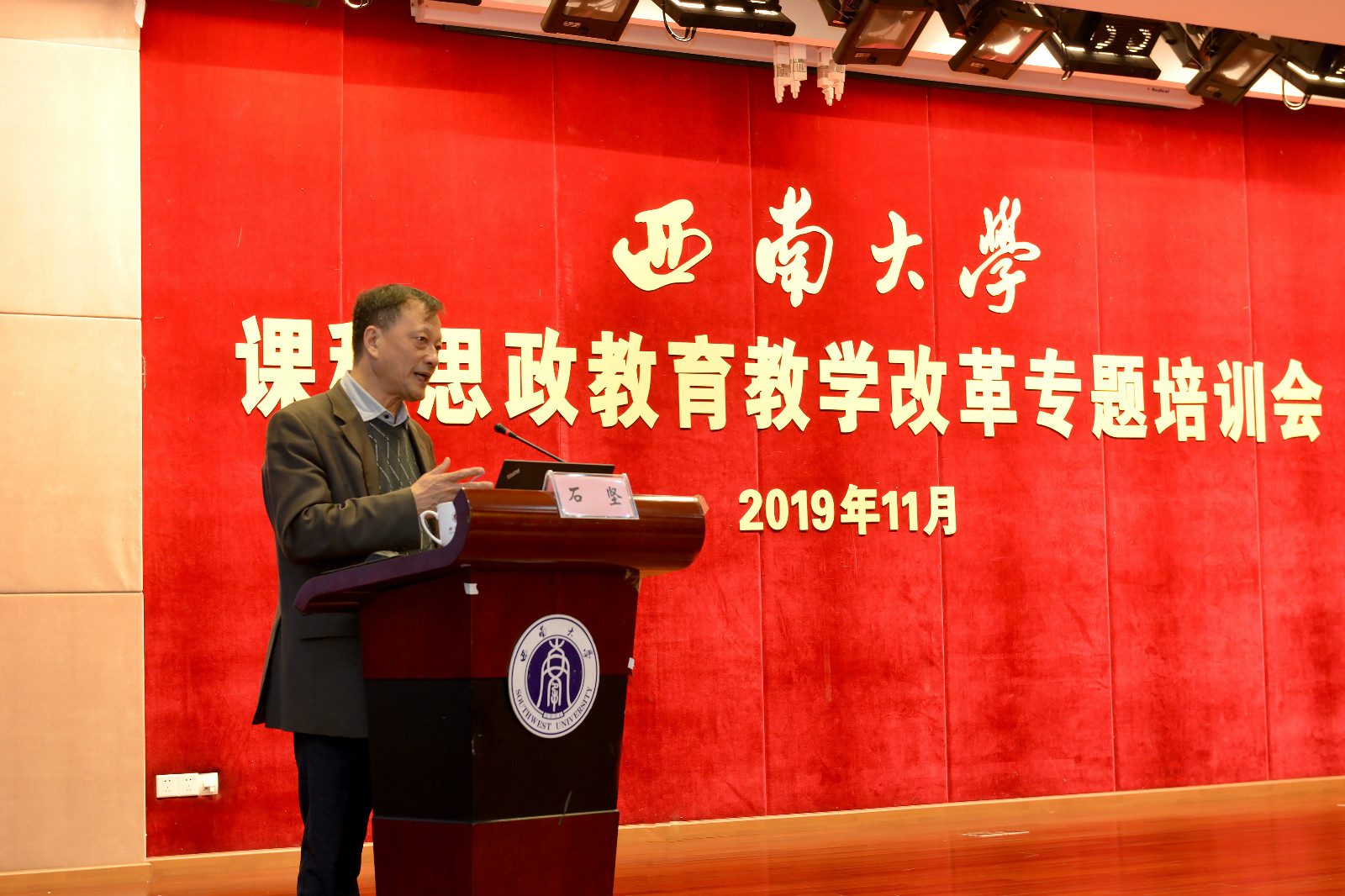 培训会邀请了四川大学首届卓越教学成果奖特等奖获得者、原四川大学副校长石坚教授,围绕课程思政教育教学改革工作和一流本科教育建设工作,以“润物细无声:课程思政与育人”和“立德树人是教育的根本使命:‘质量革命’的川大实践”为题做专题培训。