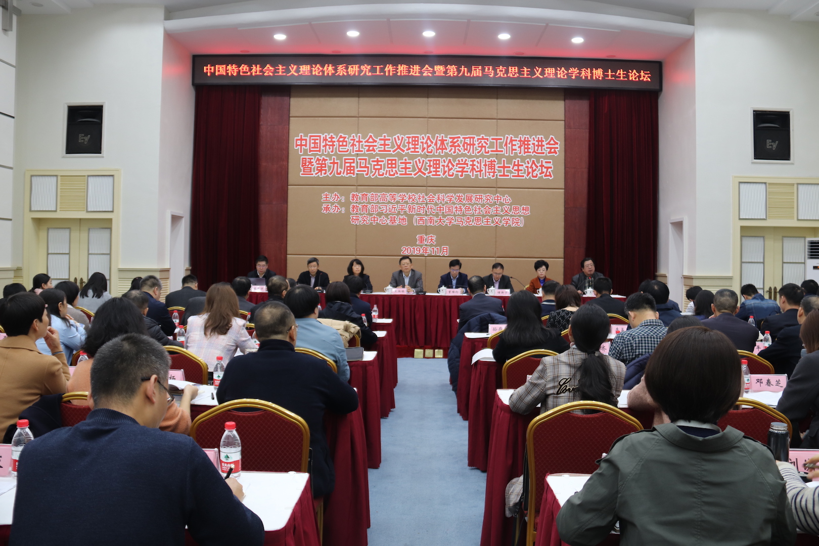 为深入学习贯彻习近平新时代中国特色社会主义思想和党的十九届四中全会精神,近日,由教育部社科中心与437ccm必赢国际官方网站联合举办的“中国特色社会主义理论体系研究工作推进会暨第九届马克思主义理论学科博士生论坛”在重庆召开。来自全国近70所高校和科研机构的有关领导专家、中国特色社会主义理论体系研究专项项目在研课题负责人及博士生代表,教育部社科中心基础理论研究处、中国特色社会主义理论体系研究处、《中国高校社会科学》编辑室和总编室有关同志共120余人参加会议。