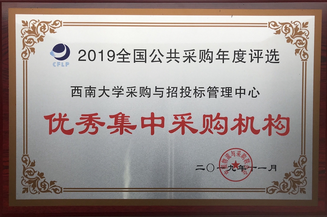 本届全球采购论坛以“数据赋能、规范采购”为主题,来自全国政府采购、国有企业采购、高校和科研机构采购、国防采购的代表,以及美国、俄罗斯等国际采购机构的代表600余人参会。该荣誉旨在激励和表彰公共采购实践中的优秀集体、先进个人、电子化先进平台、优秀采购案例,提升公共采购行业的专业化、国际化水平。本次评选共收到参评材料412份,经初步评审、专家评审委员会终评,6大奖项的获奖名单最终公布。学校与重庆市政府采购中心、中山市政府采购中心、中国电信集团、南方电网、中国移动通信集团等同获殊荣,也是本次优秀集体获得者中唯一一所高校。
