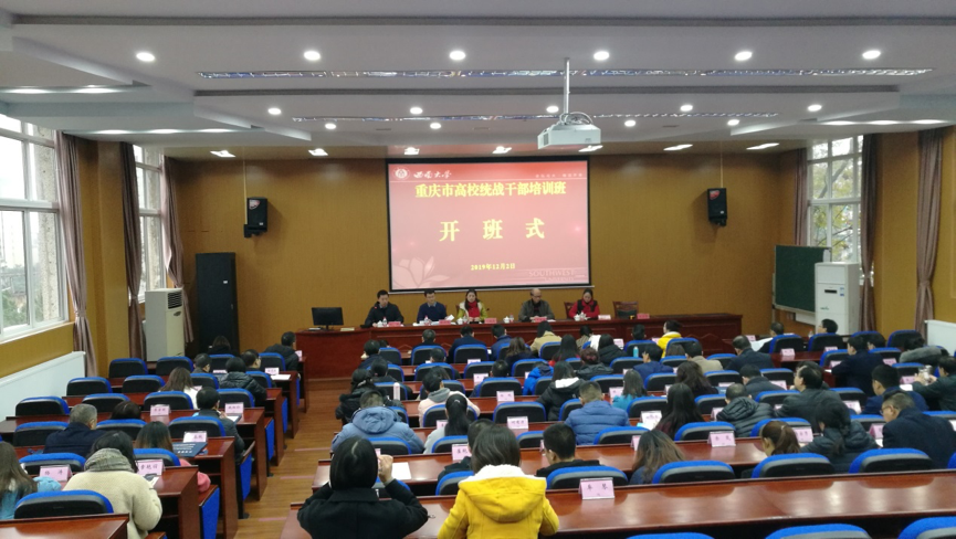 12月2日,由中共重庆市委教育工委主办、437ccm必赢国际官方网站承办的重庆市高校统战干部培训班在校开班。市委教育工委统战处处长范晓霞,市委统战部无党派人士和党外知识分子工作处副处长陈研科,市委统战部教育培训处调研员陈恒永,学校培训学院院长罗朝明出席开班式。