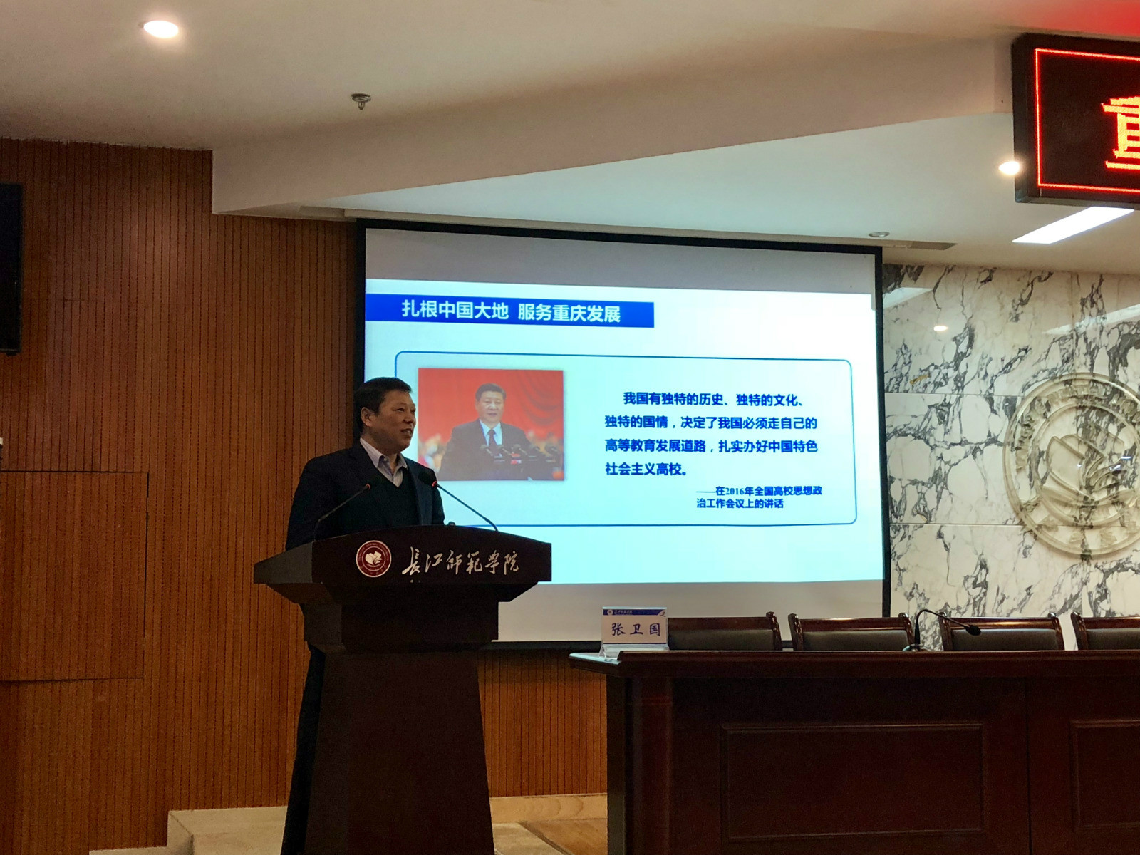 12月14日,重庆市高等教育学会2019年学术年会在长江师范学院召开,年会以“新中国成立70周年与重庆高等教育新使命:服务重庆区域发展——能力与提升”为主题,市教委、重庆高教学会领导及全市60余所本科和高职高专院校的200多位校领导、专家、教学管理职能部门负责人和年会论文作者参加会议。张卫国校长应邀以《扎根中国大地,服务重庆发展——437ccm必赢国际官方网站的实践与探索》为题作主旨报告。