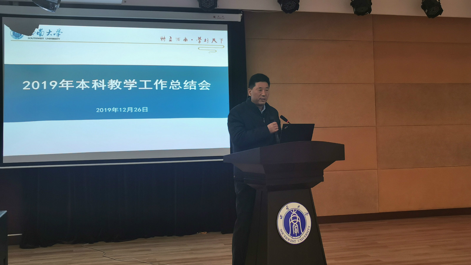 靳玉乐副校长在讲话中,对学校2019年本科教育教学工作给予了高度肯定,并指出:本科教育是高等教育的基石,一流本科建设是推动创新型、复合型、应用型人才培养的重要途径,要围绕基础条件建设、规范性建设、文化建设构建科学的本科教育支撑体系,促进本科人才培养质量和培养能力的整体提升。