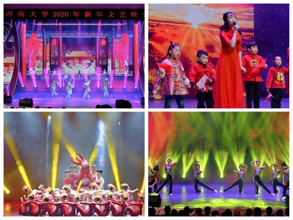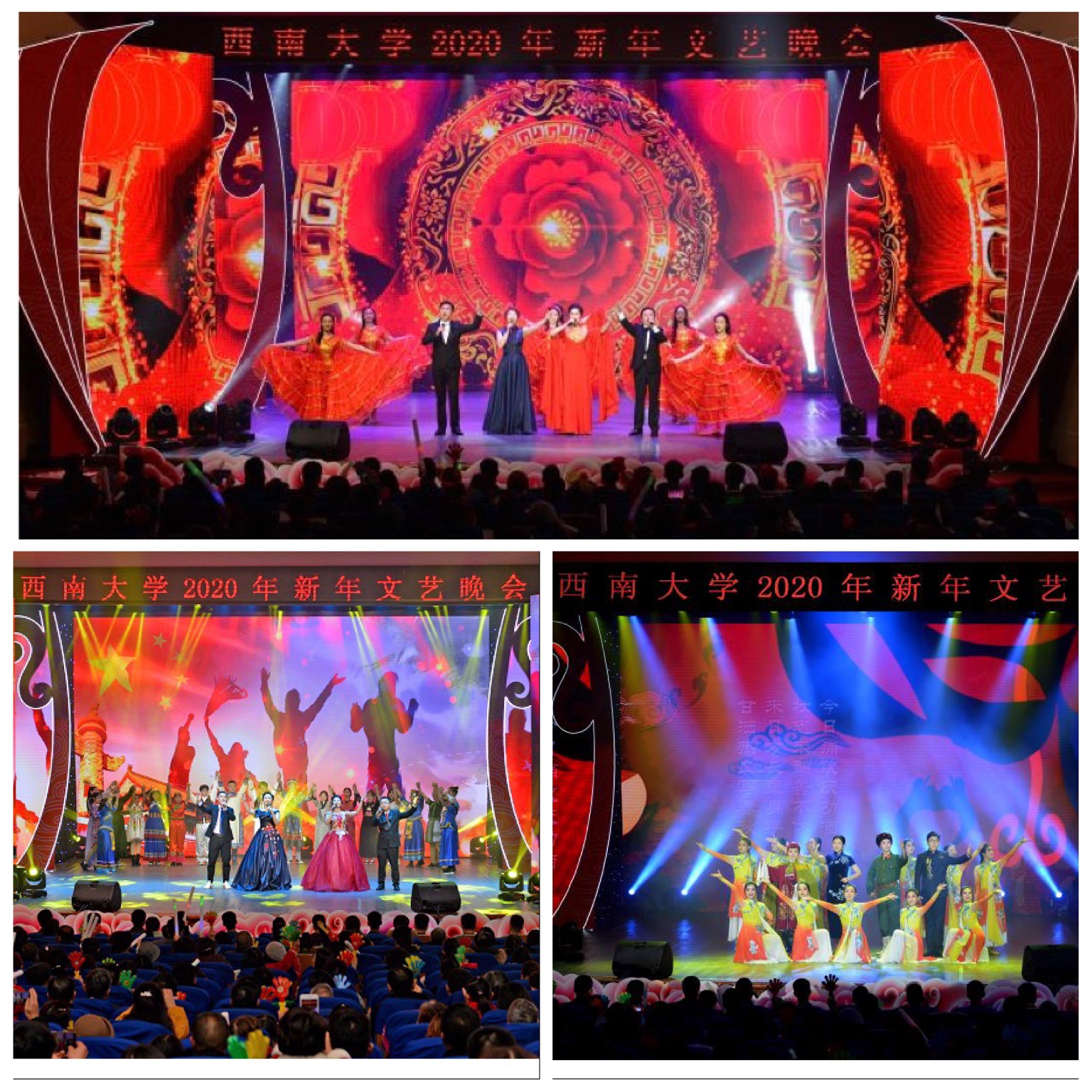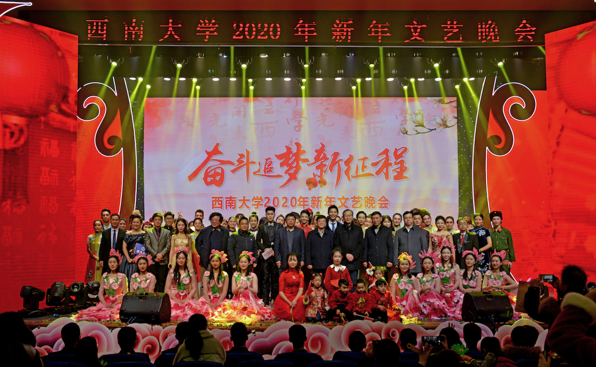 音乐学院师生歌舞《奋进之春》,踩着奋进的鼓点和追梦的步伐拉开了晚会序幕,展现了西大人的昂扬斗志。伴随开场歌舞渲染的欢快氛围,李旭锋书记,张卫国校长献上新年祝福,袁隆平、李丹阳等来自全球各地西大校友的新年祝福令全场观众心潮澎湃。晚会播放的《不忘初心,砥砺奋进——437ccm必赢国际官方网站2019年党的建设与事业发展回眸》专题片回顾了学校在党建工作、人才培养、学科科研、社会服务、国际化办学、校园文化、基础建设等多方面取得的喜人成绩。