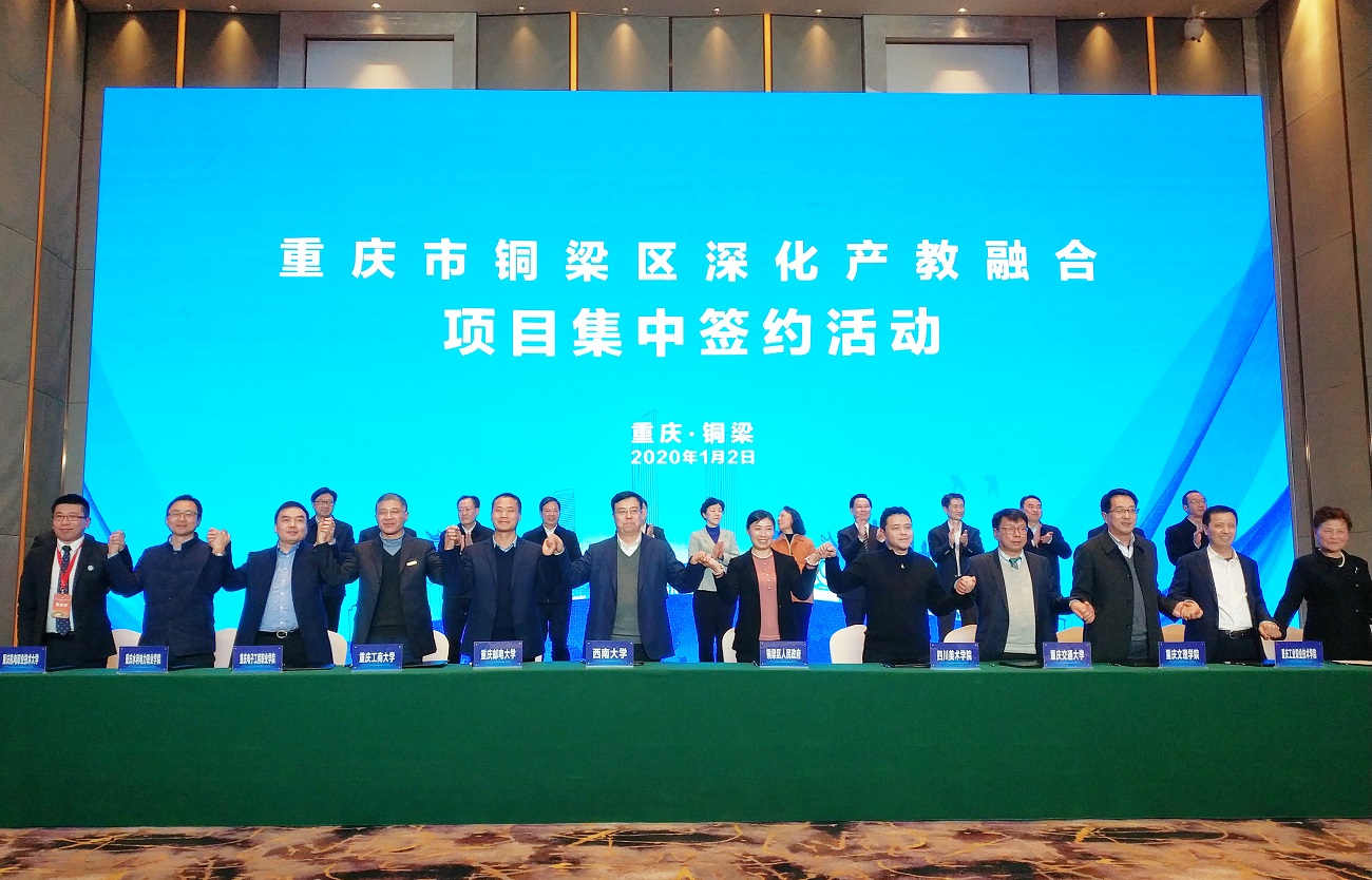 1月2日,学校副校长王进军带领校地合作处处长程龙等一行应邀参加铜梁区深化产教融合项目集中签约仪式,并与铜梁区人民政府签订战略合作协议。