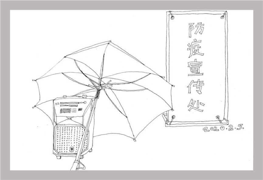 一把小小的雨伞,守护着认真工作的大喇叭,也守护着人们的希望。它挡住了淅淅沥沥的冬雨,也挡住了人们心里的恐惧和悲伤。