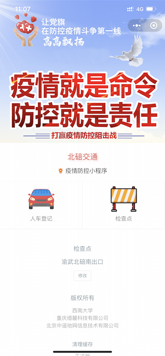 为防控疫情,计算机与信息科学学院发挥专业和学科特色,一直活跃在一线。新冠肺炎疫情以来,学院积极推进校地合作、校企合作,积极服务地方政府,义务开发社区网格化疫情防控排查系统和交通卡口疫情防控系统,在疫情防控上一个内控一个外控,对北碚区零病例作出了积极贡献。