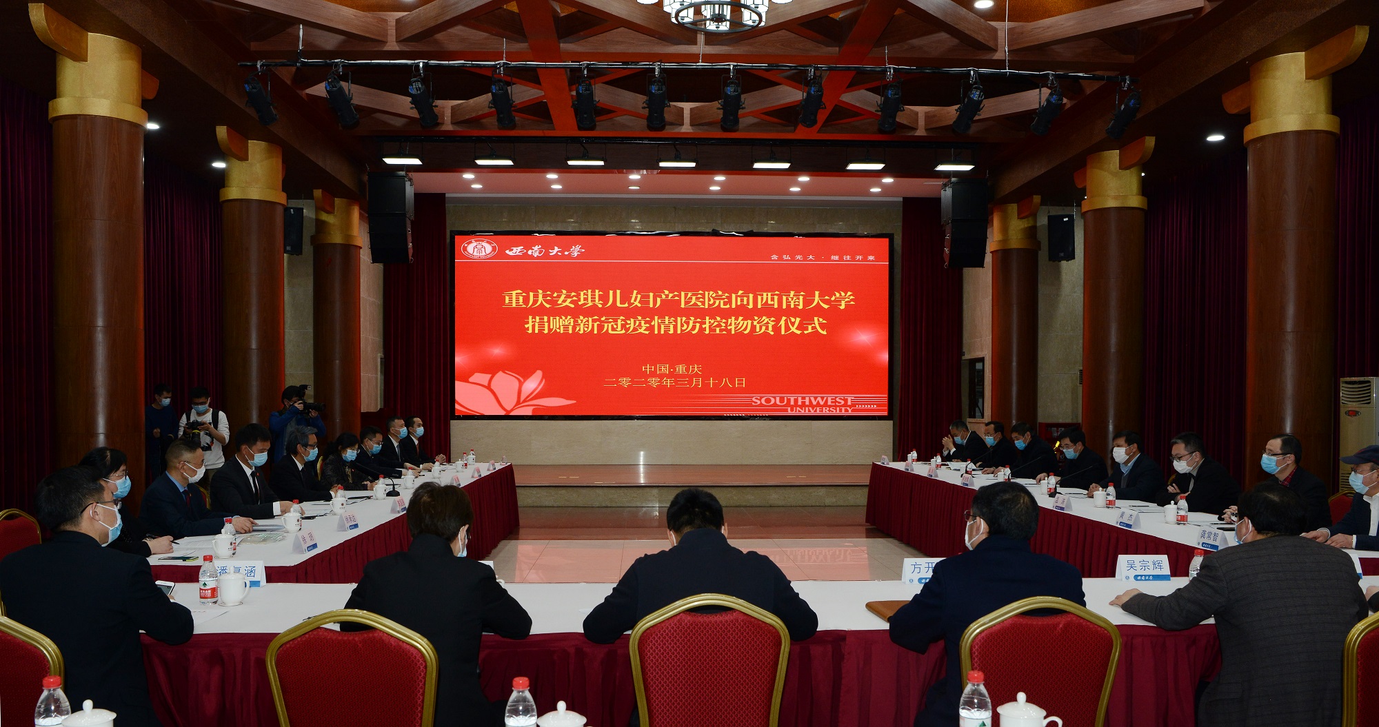 3月18日,安琪儿医疗控股集团旗下重庆安琪儿妇产医院向437ccm必赢国际官方网站捐赠新冠疫情防控物资仪式在东方红会议厅举行。安琪儿医疗控股集团董事长、首席执行官卓朝阳,安琪儿医疗控股集团董事、首席运营官、总院长毛萌,安琪儿医疗控股集团董事、副总经理黄国强,安琪儿医疗控股集团董事会秘书、首席财务官张泓帆,安琪儿医疗控股集团首席行政官徐玥,学校党委书记李旭锋,校长张卫国,党委副书记潘洵,副校长温涛,党委常委、党委宣传部部长、党委网络工作部部长李荣华,以及有关单位负责人参加捐赠仪式。党委副书记潘洵主持捐赠仪式。