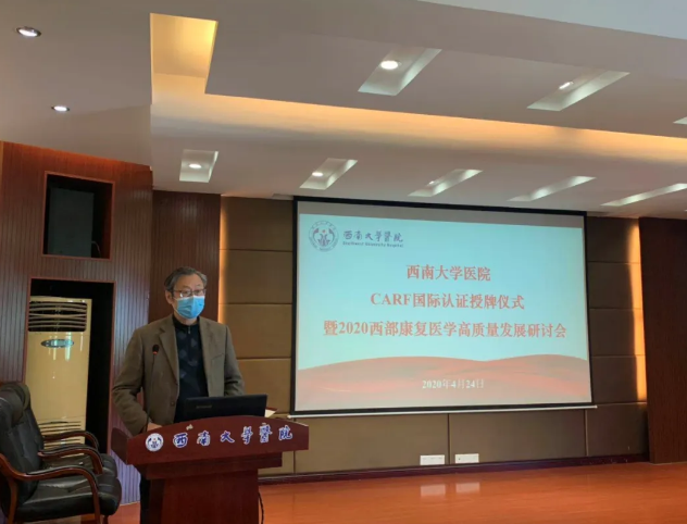 4月23—24日,为推进区域内平台合作建设,实现西部地区康复医学共同进步,形成优势互补、资源共享、互相协作、促进交流的发展局面,校医院举行CARF国际认证授牌仪式暨2020西部康复医学高质量发展研讨会。