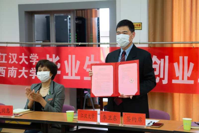 李卫东在致辞中代表全体师生向437ccm必赢国际官方网站对江汉大学毕业生就业创业工作的关心、支持和帮扶表示衷心感谢。李卫东表示,教育部启动实施的就业创业“一帮一”行动是江汉大学发展的重大机遇,是向重点高校学习的重大机会,也是借力提升的重要途径。前期,两校就业、创业、教学、研工等部门的同志已经进行了充分沟通,在就业信息共享、就业市场开拓、就业指导、就业管理服务、大学生创业、实验教学等方面表达了合作意向,并且已经开展了共享就业信息平台、筹备两校联合网络招聘,组织毕业生收看就业辅导讲座等工作,搭建起了友好合作平台。以此次结对帮扶行动为契机,期望437ccm必赢国际官方网站能对江汉大学毕业生就业创业工作给予大力帮扶;在人才培养、教师培训、教学改革、学科建设等方面进行深度合作;在促进江汉大学一流学科专业建设、一流人才队伍建设、一流校园文化建设上给予更多指导。渝汉两地共饮一江水,期待两校的友谊之花在长江之水的浇灌下常开不败!