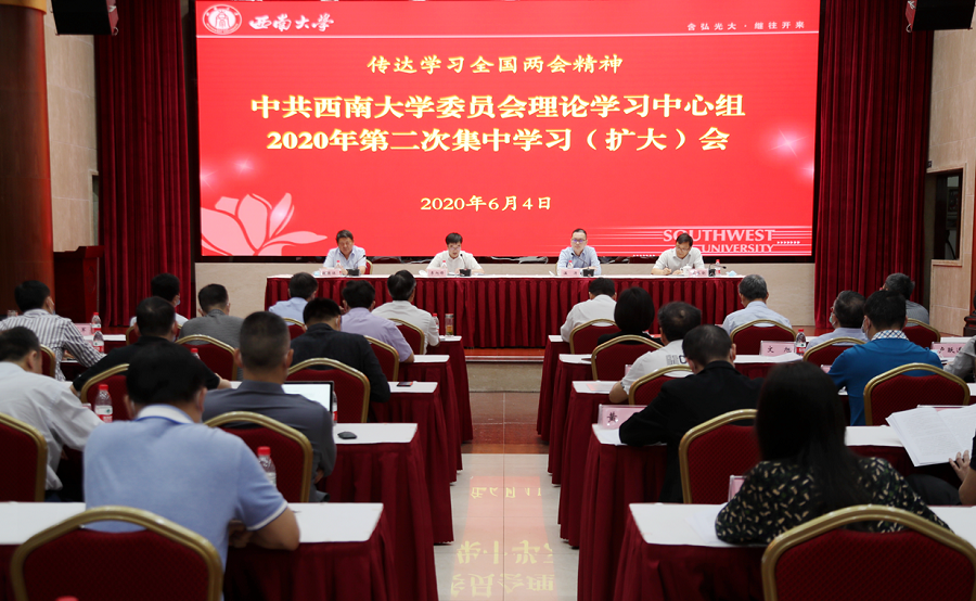 为深入学习贯彻全国两会精神,切实把思想和行动统一到习近平总书记在两会期间的重要讲话精神和全国两会精神上来,6月4日,学校在东方红会议厅召开2020年度第二次党委理论中心组(扩大)学习会,专题传达学习习近平总书记重要讲话精神和全国两会精神。校领导、党委委员、纪委委员、各民主党派基层组织、统战团体主要负责人参会。党委书记李旭锋主持会议。