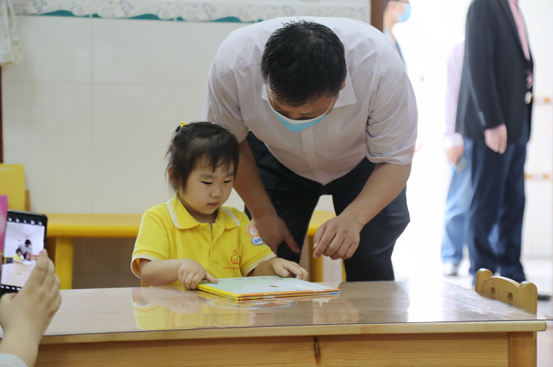 张卫国一行来到小班幼儿活动室,详细了解室内设施设备配备及其使用情况,并与孩子们亲切交流互动,关心孩子们在园的饮食起居情况。随后,张卫国来到户外活动场地,了解孩子们户外体育活动的开展情况,问询户外活动场地设施的安全性。检查组还对幼儿园目前防疫工作的开展进行了重点检查,对防控工作常态化形势下的幼儿园工作规划进行了详细指导。