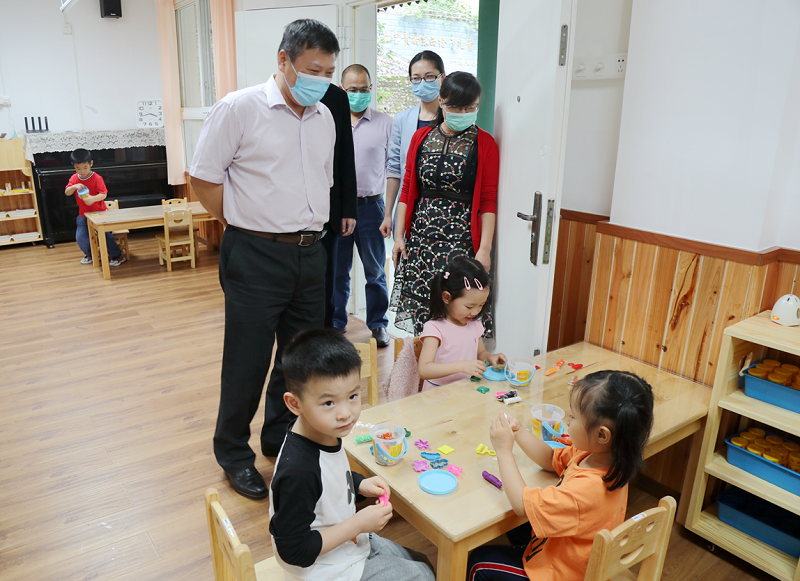6月8日,张卫国校长带队到实验幼儿园,关心了解小班幼儿复学情况。学校党政办、后勤保障部、幼儿园等有关领导陪同检查,重点就防疫工作、幼儿安全、幼儿园发展规划等内容进行了沟通。