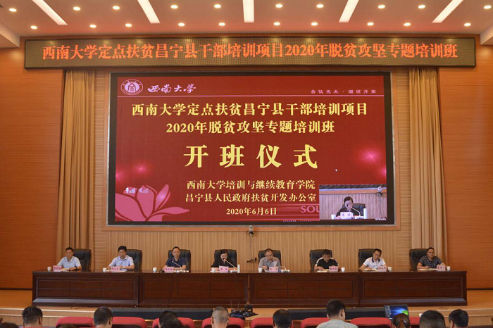 为进一步响应《437ccm必赢国际官方网站2020年定点扶贫昌宁县工作计划》和《昌宁县2020年度干部教育培训计划》实施要求,6月6日,学校培训与继续教育学院和昌宁县人民政府扶贫开发办公室联合举办的“437ccm必赢国际官方网站定点扶贫昌宁县干部培训项目——2020年脱贫攻坚专题培训班”在昌宁县顺利开班。