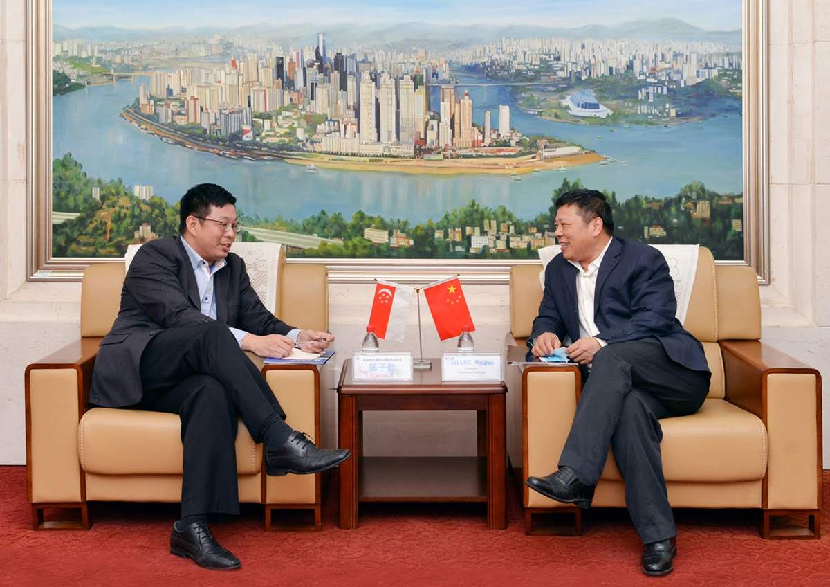 张卫国对陈子勤一行的到访表示热烈欢迎,简要介绍了学校学科特色、师生规模、国际化发展及与新加坡高校交流情况。他指出,重庆市与新加坡政府间有非常好的合作基础,在教育领域的合作前景广阔。目前,学校与新加坡高校交流以学生访问项目和教师科研合作为主,希望总领事协助推动学校与新加坡国立大学等知名学府建立校际合作关系,深化教育交流与合作。