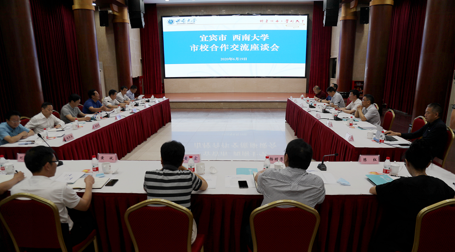 6月19日,宜宾市委书记刘中伯带队来校商谈市校合作。宜宾市委副书记黄河、常务副市长赵浩宇、副市长张健,学校党委书记李旭锋,副校长陈时见、靳玉乐、温涛出席座谈会。靳玉乐主持会议。