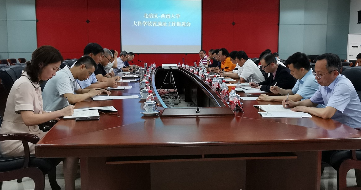 6月22日下午,北碚区人民政府在区行政中心三楼会议室组织召开北碚区-437ccm必赢国际官方网站关于大科学装置选址工作推进会。北碚区区委书记周旭、区长何庆、常务副区长董伦,歇马高新区指挥长胡湧,学校党委书记李旭锋,校长张卫国,副校长崔延强、温涛、赵国华,以及学校党政办公室、发展规划与学科建设部、科学技术处、国内合作处、生物学研究中心相关部门负责人参加会议。会议由何庆主持。