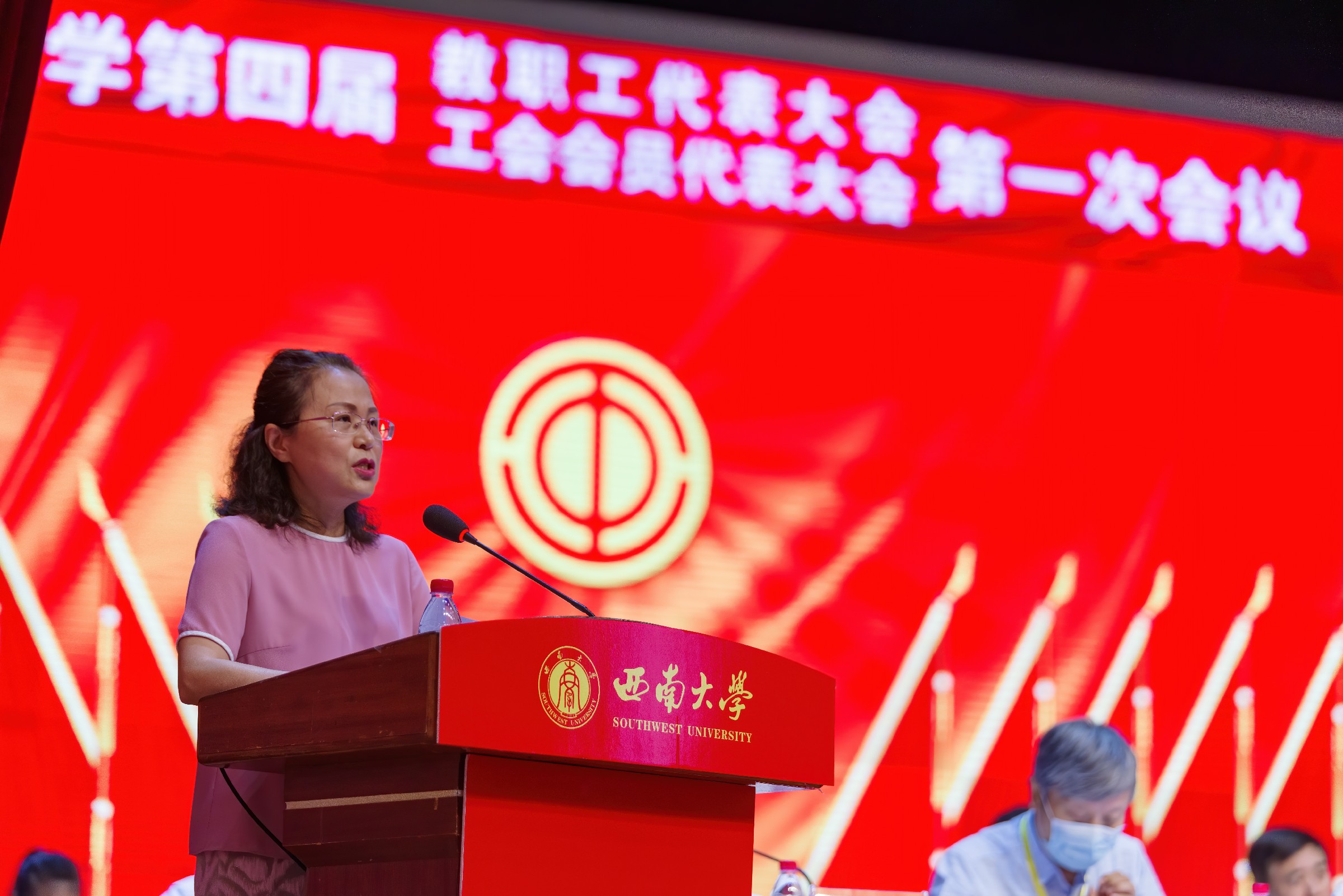 重庆市总工会一级巡视员、重庆市教科文卫体工会主席杨军波致辞,预祝大会圆满召开。杨军波充分肯定了437ccm必赢国际官方网站第三届工会在学校党委的正确领导和行政的重视支持下,紧紧围绕学校中心工作,自觉服务学校发展大局,在引领教职工思想、助力教职工建功立业、推进健全规范化民主管理、促进校园文化建设、开展教职工文化体育活动、关心关爱教职工等方面卓有成效的工作。并对学校工会的开展提出三点建议:一是履行政治责任,团结带领职工群众坚定不移听党话、跟党走。二是紧扣时代主题,组织动员广大教育工作者立足本职建功立业。三是真诚服务职工,不断提升职工群众的获得感、幸福感、安全感。