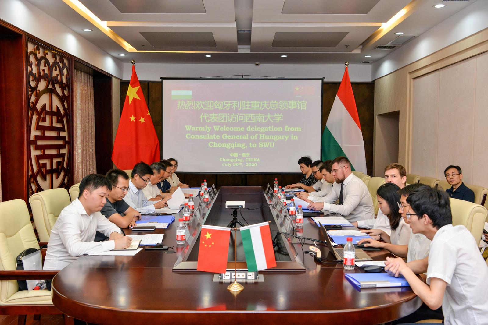 匈牙利驻重庆总领事馆总领事罗澜、副馆长葛凯达、商务领事百里和文化教育专员李静一行4人7月30日来校访问。副校长靳玉乐接待客人。