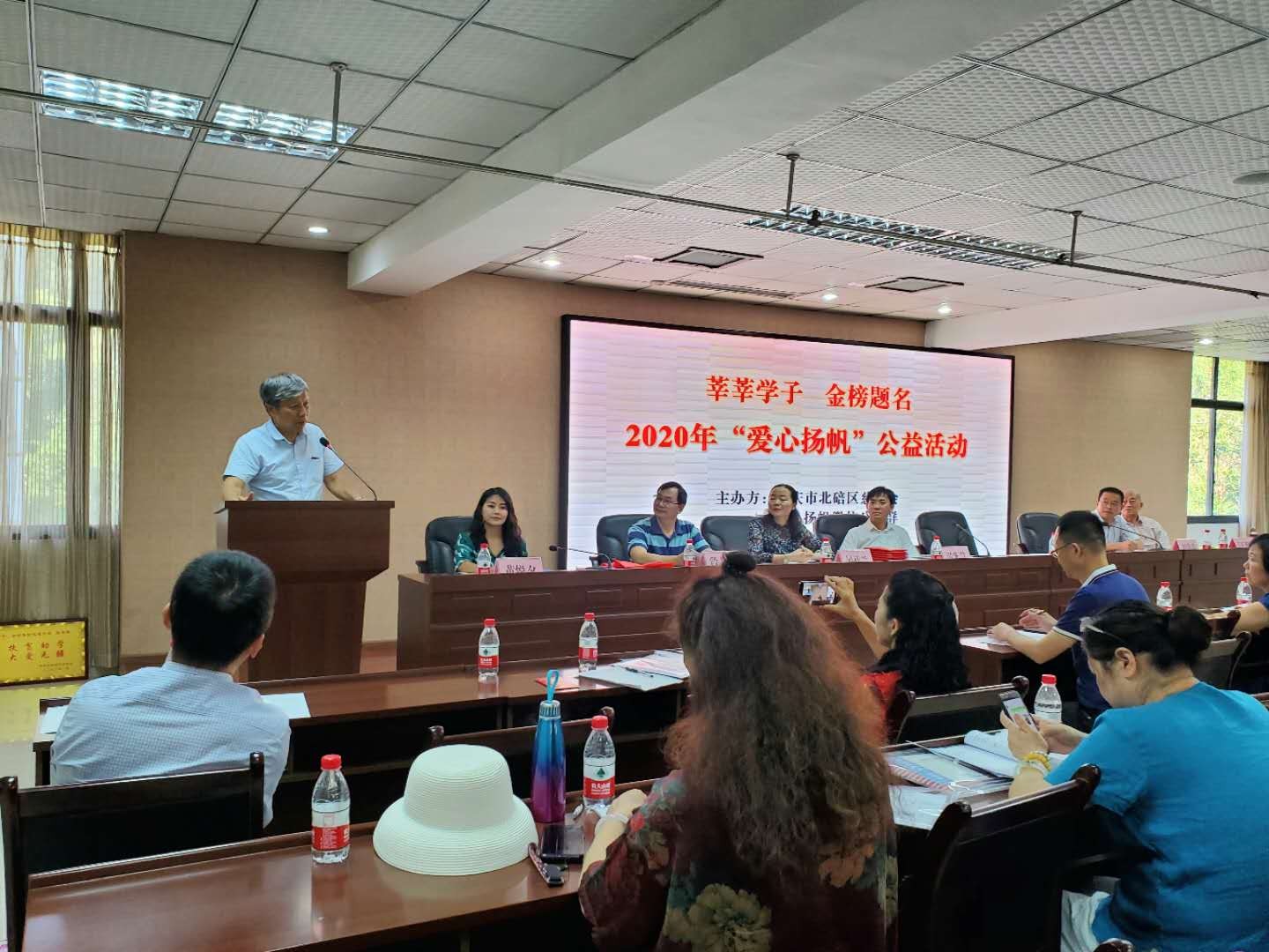 8月30号上午,由学校老师叶晓娅发起的“爱心扬帆”公益项目,资助2020届贫困学生暨爱心人士颁奖仪式在北碚区民政局召开。北碚区慈善会会长游先慧,教育部西南基础教育课程研究中心主任宋乃庆,学校老师叶晓娅,受资助学生所在学校有关领导,社会各界爱心人士,部分受资助学生及家长代表出席会议。会议由爱心人士代表黄悦夕主持。