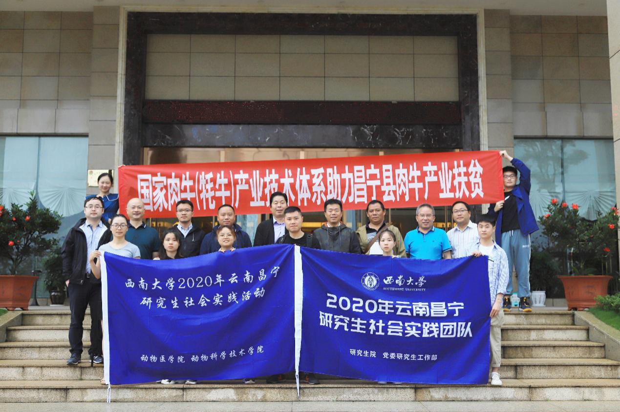2020年是全面建成小康社会目标实现之年,是脱贫攻坚战收官之年,为落实437ccm必赢国际官方网站定点帮扶云南省昌宁县扶贫工作,学校动物医学院和动物科学技术学院联合组建实力雄厚的专家团队,带领畜牧兽医专业的研究生组成肉牛健康养殖实践团队于8月15日-24日赴云南省昌宁县,调研当地肉牛养殖全产业链现状,并开展相关技术指导。实践团队指导老师有国家肉牛(牦牛)产业技术体系疾病控制岗位专家彭远义教授、王自力教授、方仁东教授、赵永聚教授、徐恢仲副教授、杨震国博士及研究生辅导员李洋老师。