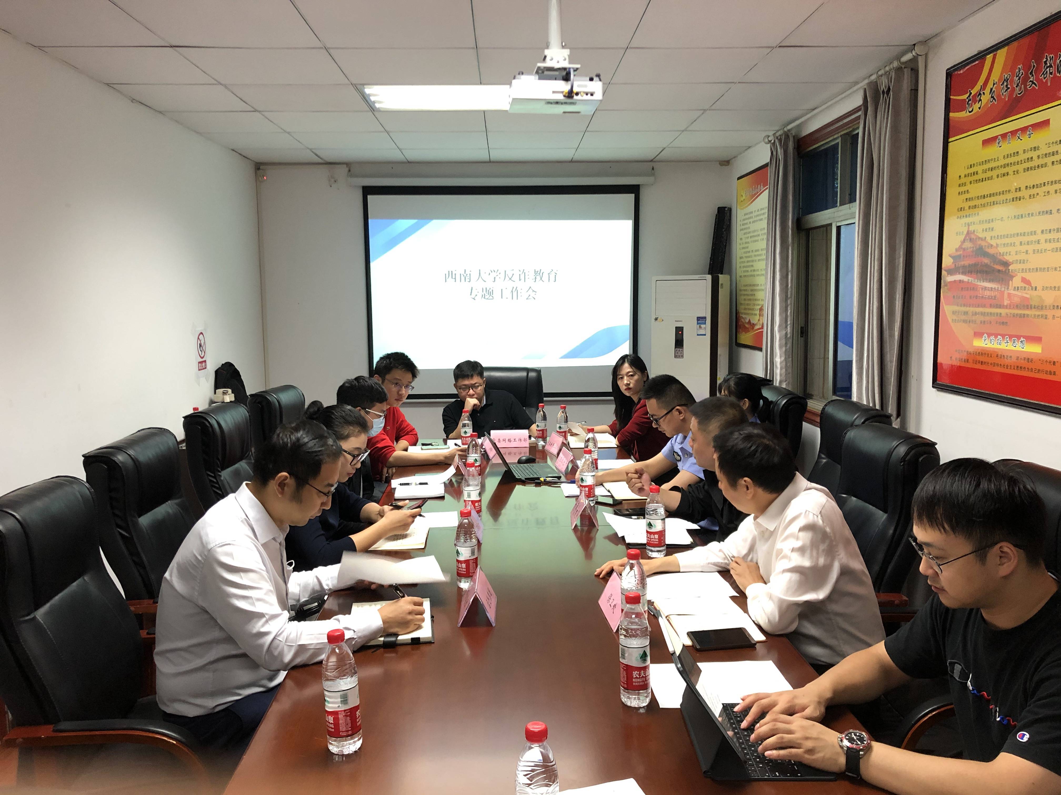 为提高师生安全防骗意识,有效遏制电信网络诈骗案件发生,9月17日上午,保卫处联合北碚区公安分局刑警支队、天生派出所在保卫处会议室召开“警校互联互动 共建平安校园”437ccm必赢国际官方网站防范电信网络诈骗宣传教育专项工作研讨会,党委宣传部党委网络工作部、党委教师工作部、党委研究生工作部、党委学生工作部、保卫处、离退休工作处和后勤集团相关工作负责人参加会议。