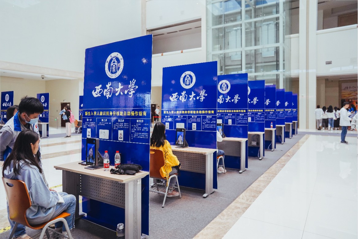 核验现场,志愿者引导新生按照《人脸识别身份核验自助操作指南》,逐一完成系统核验。部分暂缓报到、身份证遗失同学将在国庆节后进行核验,以确保每位新生参加本次“人脸识别身份核验”资格复查。荣昌校区新生也于26日完成了身份核验。