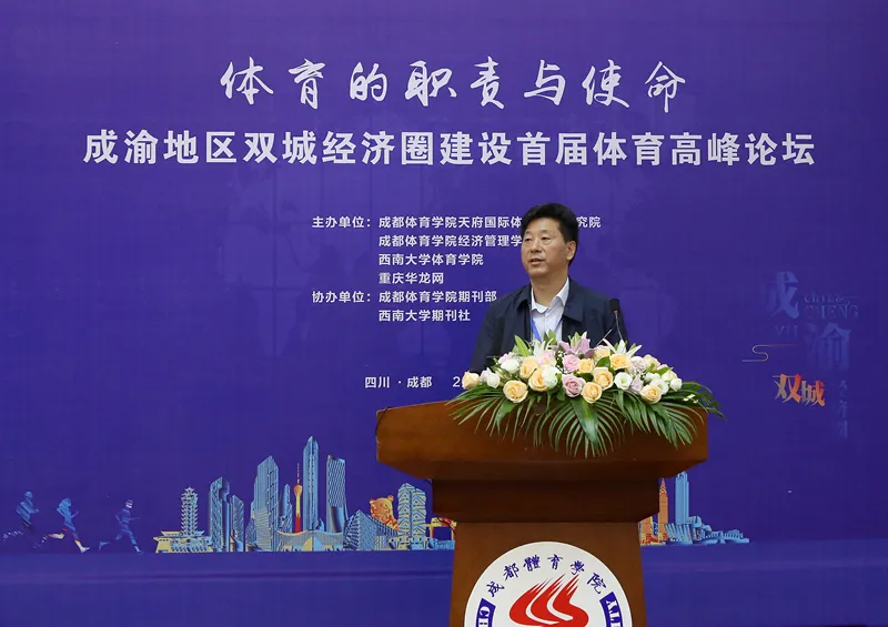 为推动川渝体育融合,助力成渝地区双城经济圈建设,9月30日,由成都体育学院天府国际体育赛事研究院、成都体育学院经济管理学院、437ccm必赢国际官方网站体育学院、重庆华龙网主办,437ccm必赢国际官方网站期刊社、成都体育学院期刊部协办的“体育的职责与使命——成渝地区双城经济圈建设首届体育高峰论坛”在成都体育学院举行。本次论坛以“成渝双城经济圈建设与‘城市体育’发展”为主题,共襄成渝双城经济圈建设。