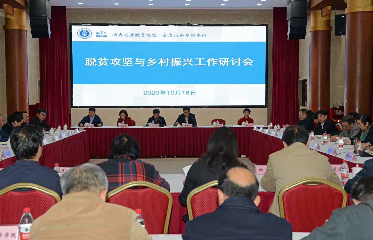 在全国第7个扶贫日来临之际,10月16日下午,学校召开“助力决胜脱贫攻坚,全力服务乡村振兴”为主题的脱贫攻坚与乡村振兴工作研讨会。党委书记、定点扶贫工作领导小组组长李旭锋,副校长、定点扶贫工作领导小组副组长赵国华出席会议,定点扶贫工作领导小组成员单位、相关学院负责人,专家代表、学校扶贫挂职干部、帮扶地方代表、学生代表等参加了研讨会。赵国华主持会议。