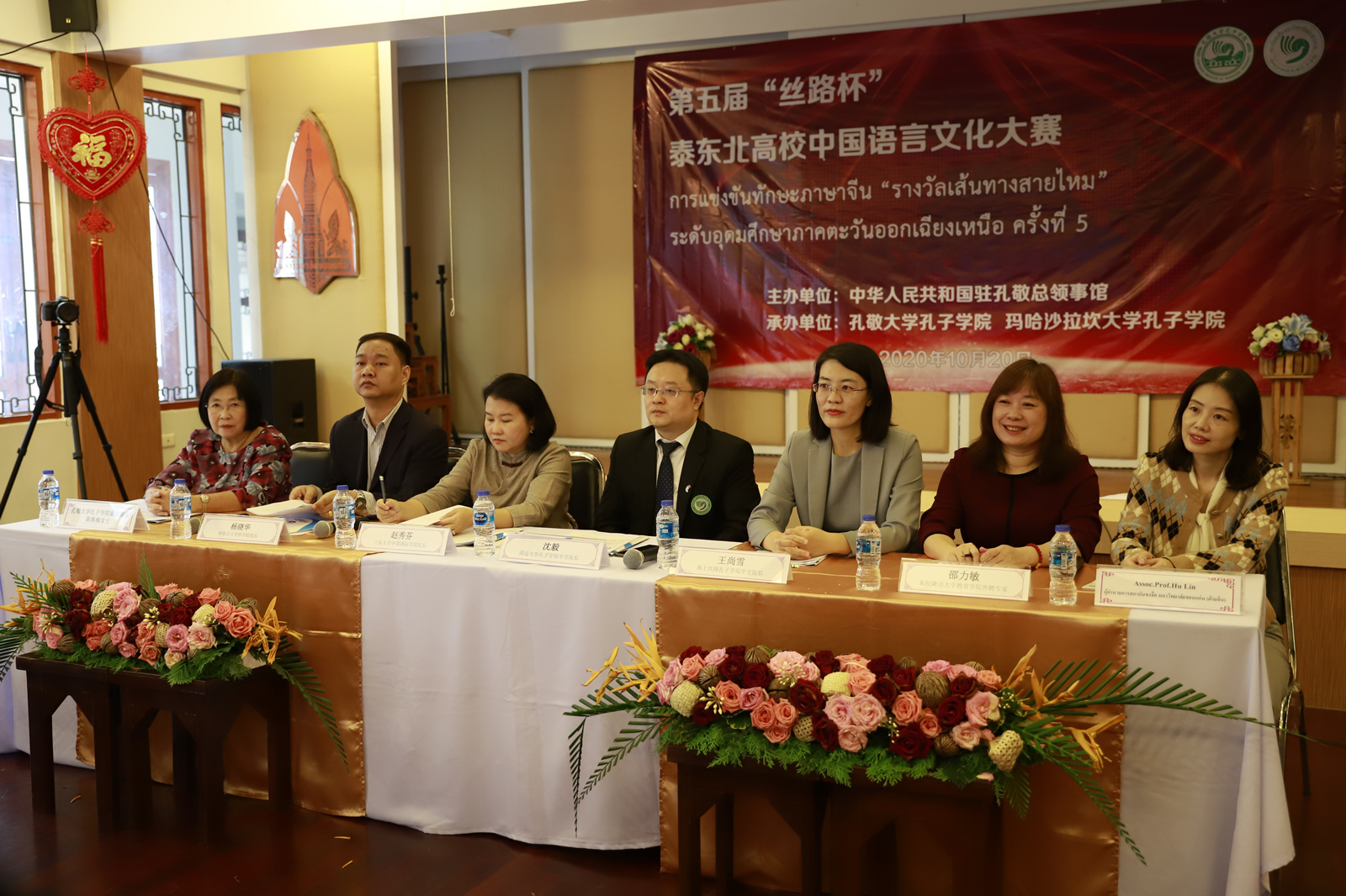 10月20日,学校共建泰国孔敬大学孔子学院携手玛哈沙拉坎大学孔子学院举办第五届“丝路杯”泰东北地区高校中国语言文化大赛。本次比赛采取线上形式进行。中国驻泰王国大使馆一等秘书宋若云,驻孔敬总领事廖俊云,孔敬大学孔子学院和玛哈沙拉坎大学孔子学院代表出席开幕式。来自437ccm必赢国际官方网站、泰国朱拉隆功大学、兰实大学的中文教育专家担任评委。本次比赛共有12所高校代表队参赛,参赛师生共300余人。