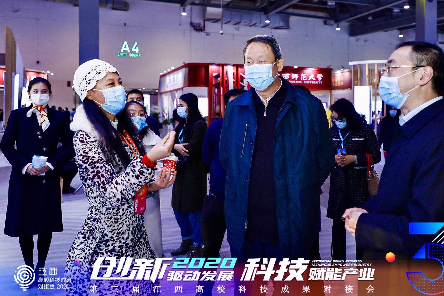 在对接会现场,教育部科技发展中心主任罗方述及江西省相关领导来到学校展台,参观学校参加对接会的展示成果,对学校的精心组织表示感谢。罗方述对学校参展的科技成果给予肯定。参与此次科技成果对接会,对学校科技成果转化、推广起到积极的促进作用。