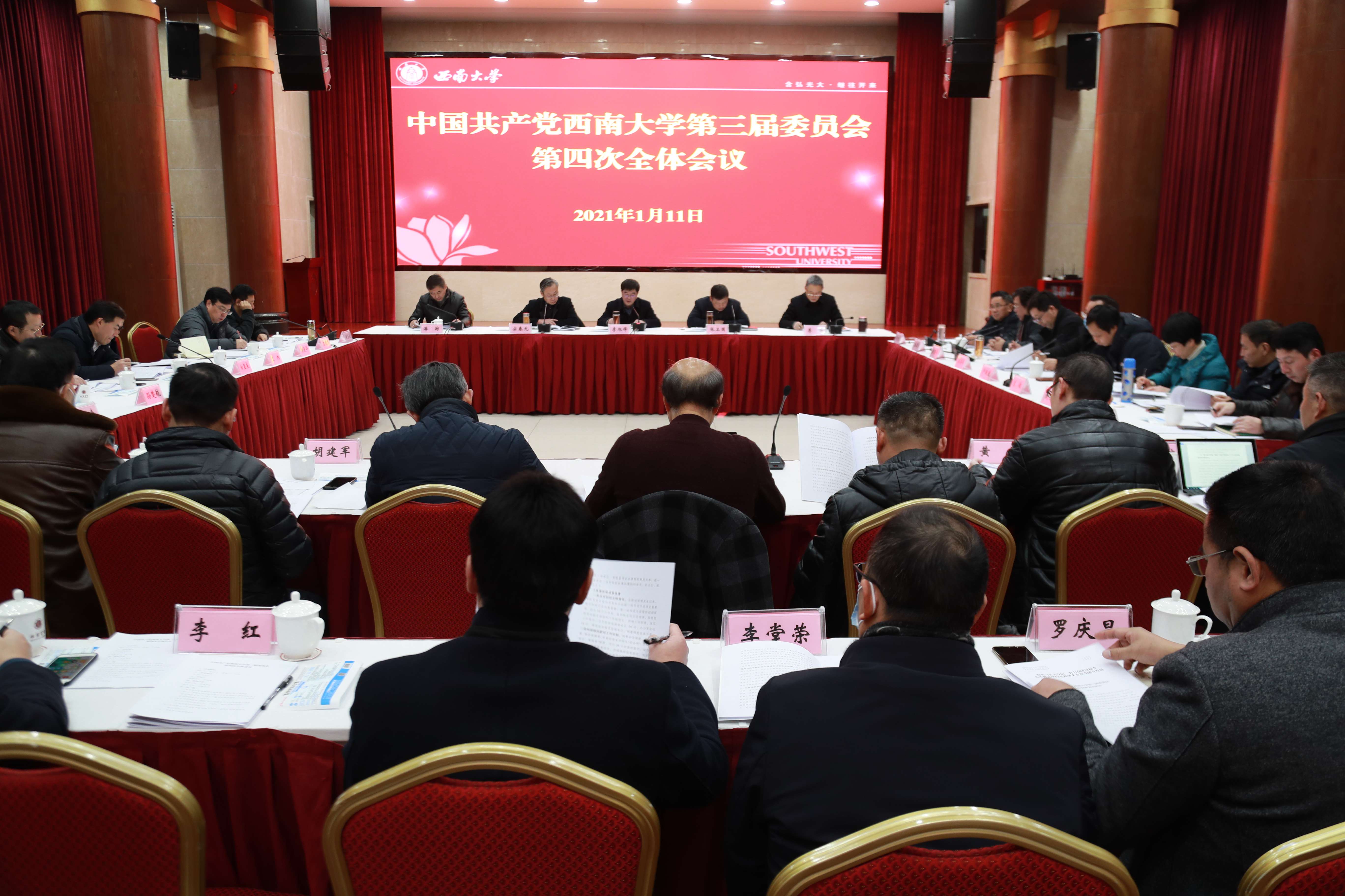 1月11日下午,中国共产党437ccm必赢国际官方网站第三届委员会第四次全体会议在东方红会议厅召开,学校党委常委会主持会议,党委委员出席会议,纪委委员列席会议。