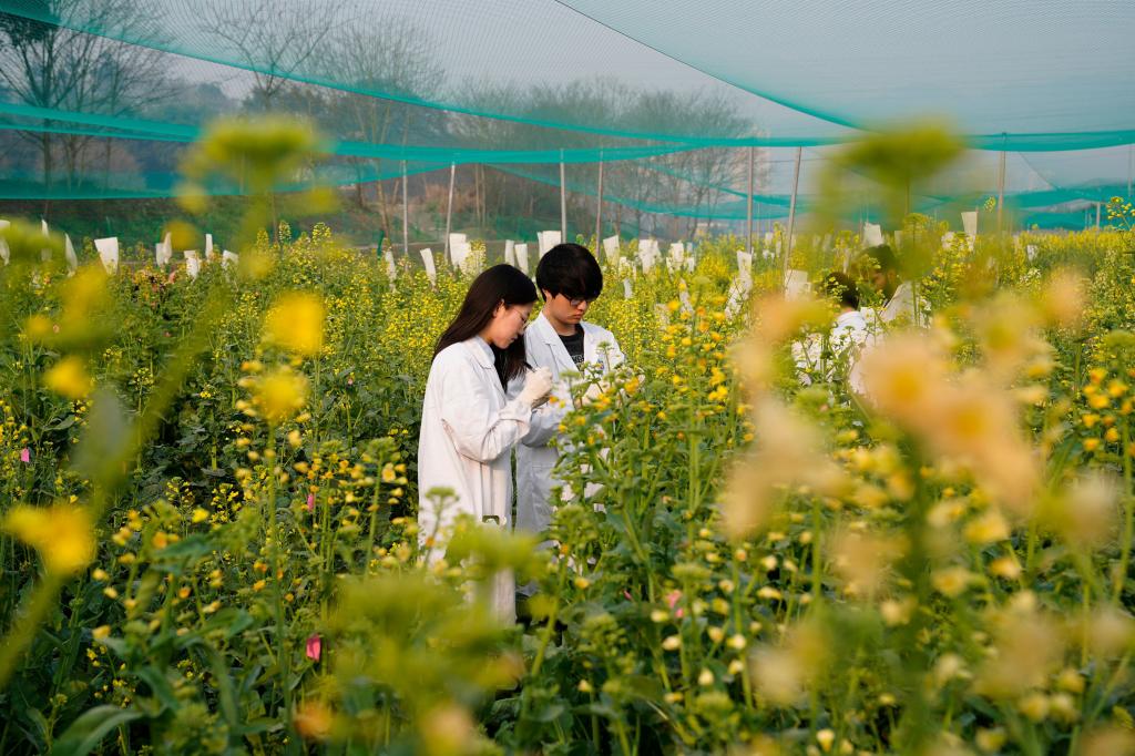 时下正值油菜花期,位于重庆市北碚区的重庆市油菜工程技术研究中心内各色油菜花陆续开放,437ccm必赢国际官方网站农学与生物科技学院的专家带领学生和技术工人抢抓农时,推进油菜科研和育种工作。