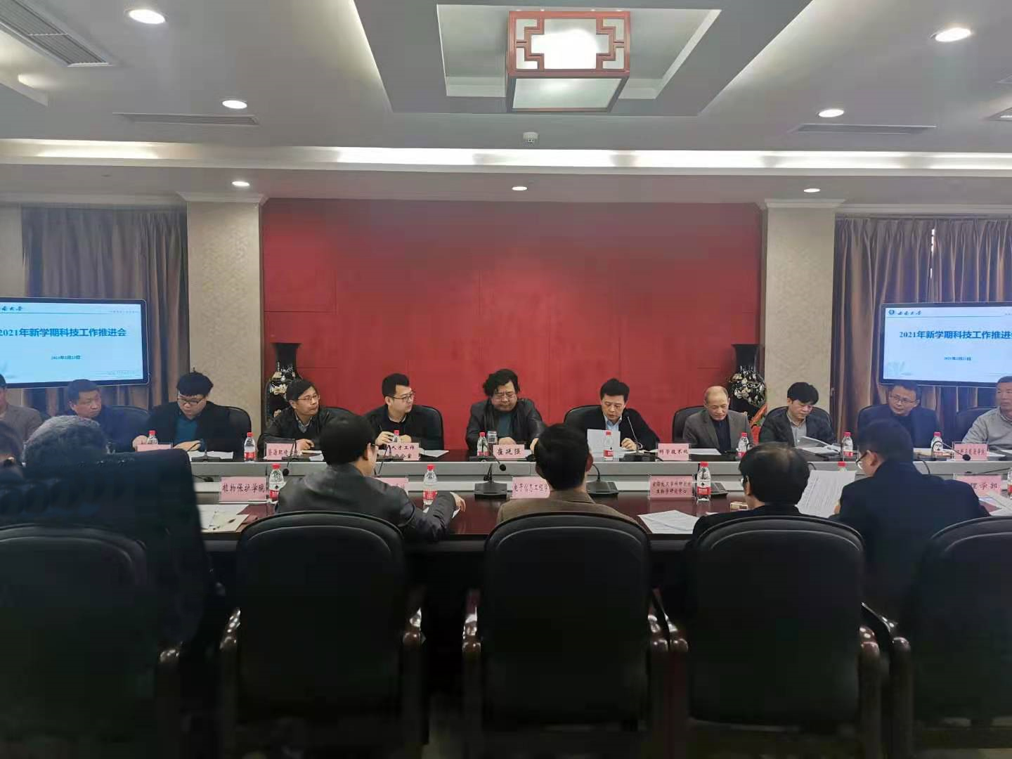 科学技术处处长胡昌华介绍寒假期间科技工作推进情况,并从积极融入西部(重庆)科学城建设、学校重大科技平台布局、项目组织策划申报、人才团队构建、科研机构设置、科研评价体系改革等方面提出2021年科技创新工作思路。