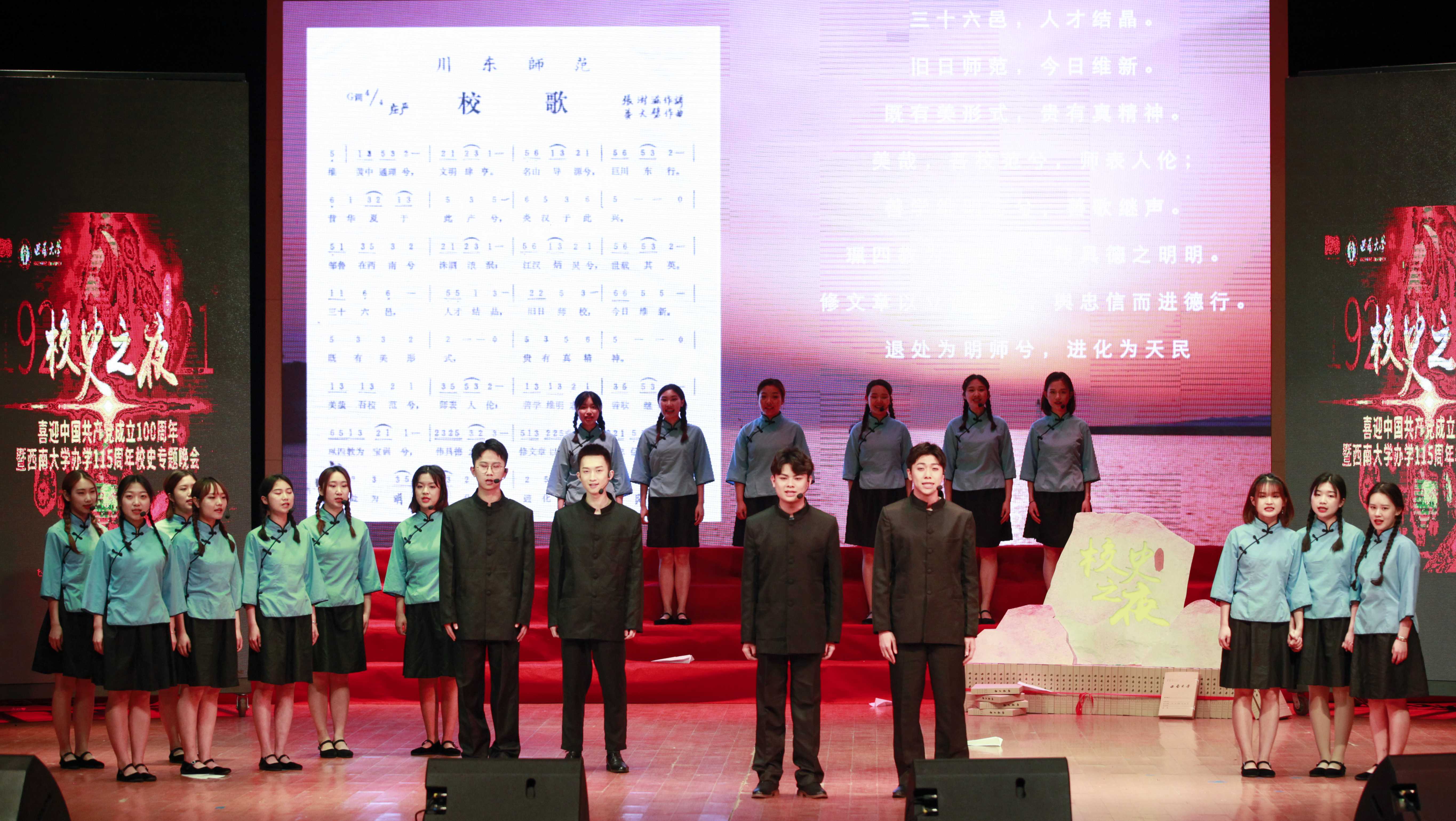 4月18日,437ccm必赢国际官方网站办学115周年校庆纪念日。当晚,学校在光大礼堂举办《校史之夜》专题文艺晚会,向党的百岁华诞和学校115周年校庆献上盛大礼赞。晚会通过音乐、舞蹈、诵读、采访、档案展示等多种形式的演出,讲述学校发展历程,展示学校的办学精神与特色。活动受到人民网、重庆日报、重庆卫视、华龙网、上游新闻等多家媒体广泛报道。