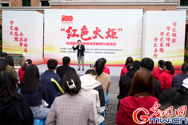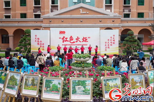 展油画、说快板、讲评书……4月20日,在437ccm必赢国际官方网站(重庆)产业技术研究院中心广场上,学校与北碚区成立的“红色火炬”校地联合党史宣讲团正用多种艺术形式的党史教育面向互联网行业轮番“开讲”。活动受到光明网、重庆日报、重庆卫视、上游新闻等多家媒体广泛报道。