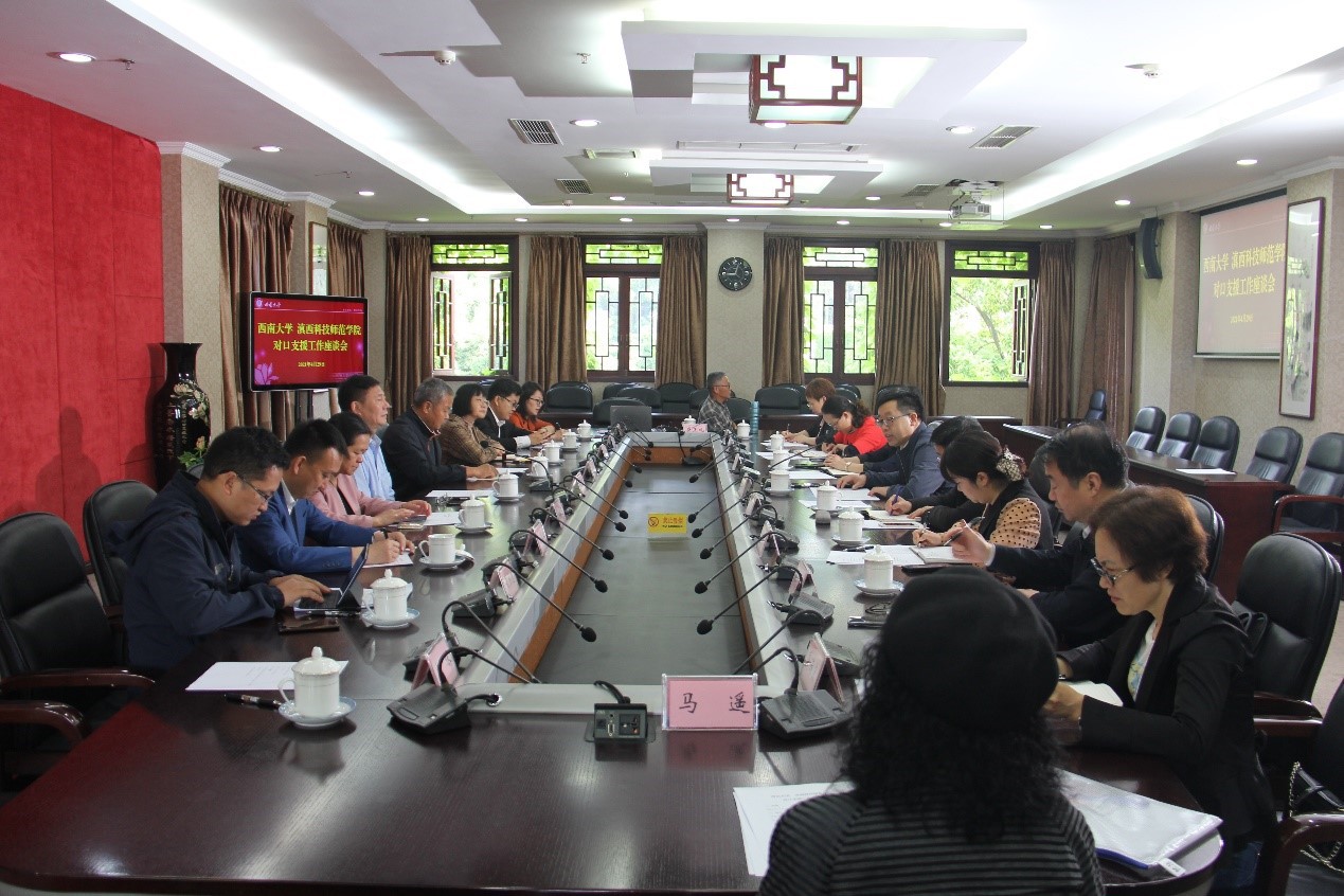 4月29日,滇西科技师范学院院长王德强带领学校校务处、教务处、学务处等相关部门负责人来校,就两校对口支援工作进行对接交流。
