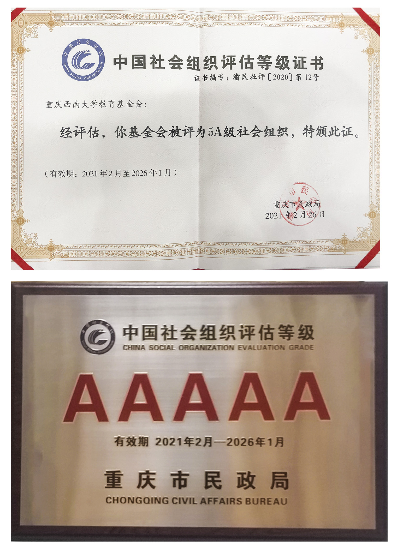 铸爱十年坚守初心,再获5A扬帆起航。2021年5月28日,重庆市全市性社会组织评估等级授牌仪式在重庆市民政局举行,重庆437ccm必赢国际官方网站教育基金会获评最高等级——5A级社会组织,这是继2015年被重庆市民政局授予5A等级后再次获此殊荣,也是本次评估中唯一获得5A等级的基金会。