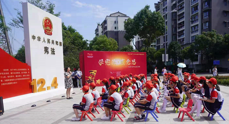聚焦专业学党史,党章百年铸辉煌。6月4日下午,在北碚缙云法治文化公园, 学校廌鸣法律社的青年志愿者们聚焦专业所学,将党史教育与法治教育有机融合,为北碚区华光小学的同学们上了一堂别开生面的沉浸式中小学法治教育课。此次活动由北碚区司法局、团区委、普法办、437ccm必赢国际官方网站法学院联合主办,是法学院党史学习教育的重要组成。