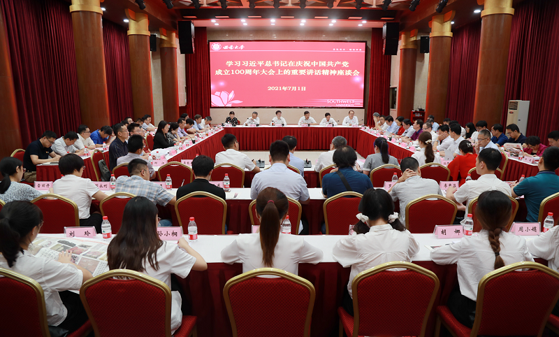 为深入学习习近平总书记在庆祝中国共产党成立100周年大会上的重要讲话精神,深刻把握精髓要义和实践要求,庆祝党的百年华诞。学校党委于当日下午在东方红会议厅组织召开座谈会,教育部高校党史学习教育第十一巡回指导组,校领导、党委常委,机关职能部门、直附属单位主要负责人代表,学院(部)党政主要负责人代表,“光荣在党50年”老党员代表,师生代表参加座谈。学校党委书记李旭锋主持座谈会。