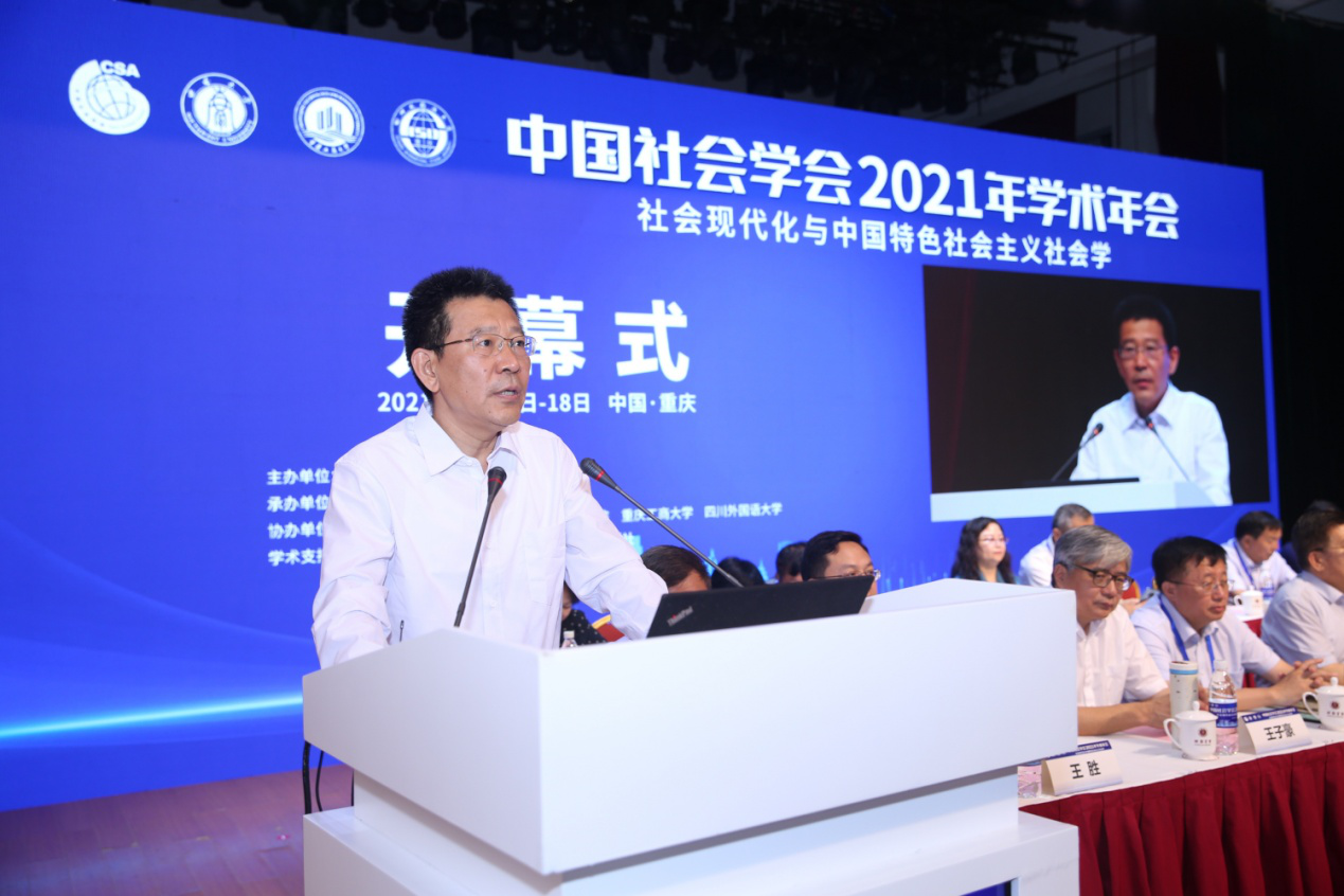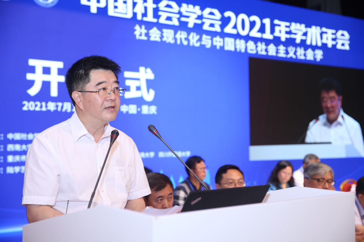 7月17日上午,由中国社会学会主办、437ccm必赢国际官方网站承办,重庆市社会科学界联合会、重庆社会科学院、重庆工商大学、四川外国语大学联合协办的中国社会学会2021年学术年会在437ccm必赢国际官方网站光大礼堂开幕。