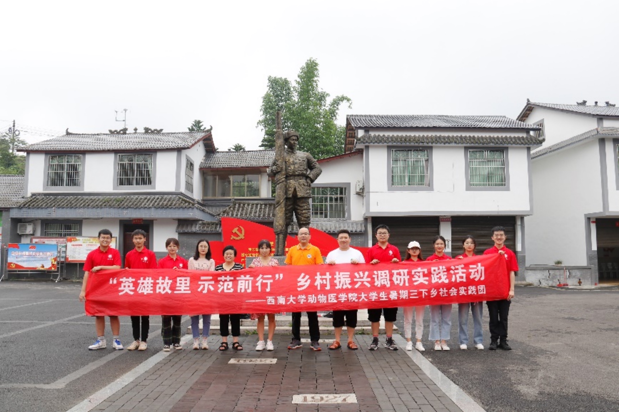 乡村兴则国家兴,为投身乡村振兴、探索乡村发展现状,动物医学院“三下乡”社会实践团在重庆市荣昌区荣隆镇玉久村组织开展“英雄故里、示范前行”乡村振兴调研实践活动。本次活动聚焦乡村振兴三农问题,通过指导养殖户、针对当地情况发放兽药,为农业振兴献计献策;通过重走英雄路来领略红色乡村文化;通过慰问村民、“大手牵小手”帮扶来关心农民生活。
