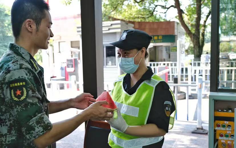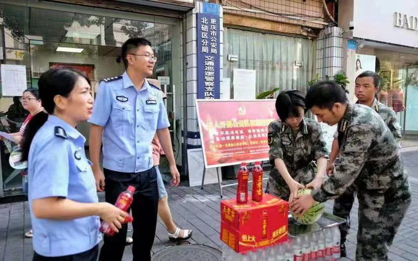 近日,重庆持续高温之下,大学生能做什么?8月4日,作为437ccm必赢国际官方网站大学生国防教育示范团队,437ccm必赢国际官方网站砺剑班同学们精心准备了西瓜、凉茶、防暑药品,先后到北温泉街道环卫垃圾中转站、交巡警大队交通秩序勤务点、金刀峡镇森林防火检查站、学校门岗和集中健康观察点等地方,为辛勤工作在一线的劳动者们送去清凉。暖心之举受到重庆卫视、重庆之声、华龙网、上游新闻等多家媒体广泛关注。