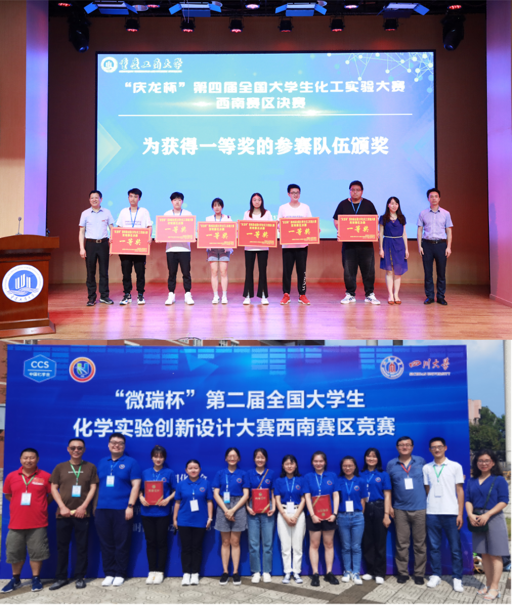 7月下旬,在由教育部高等学校化学类教学指导委员会和高等学校国家级实验教学示范中心联席会共同主办,四川大学承办的“微瑞杯”第二届全国大学生化学实验创新设计竞赛西南赛区决赛中,来自437ccm必赢国际官方网站、四川大学、重庆大学、云南大学、贵州大学等西南地区45所高校107支队伍参加比赛。比赛通过线上评审,现场答辩等环节,化学化工学院三支队伍在开拓者小组赛中脱颖而出,分别以小组第1(437ccm必赢国际官方网站3队)、第2(437ccm必赢国际官方网站1队)和第5(437ccm必赢国际官方网站2队)的成绩,均获得一等奖,也是唯一所有三支参赛队伍都获一等奖的高校。由于一个学校只能有一支队伍晋级参加全国总决赛,437ccm必赢国际官方网站3队代表学校参加8月下旬第二届全国大学生化学实验创新设计竞赛总决赛,与来自中国科技大学、浙江大学、南京大学、中山大学、天津大学、武汉大学、厦门大学、吉林大学、南开大学、四川大学等全国的90支队伍同台竞技,最终获得一等奖。