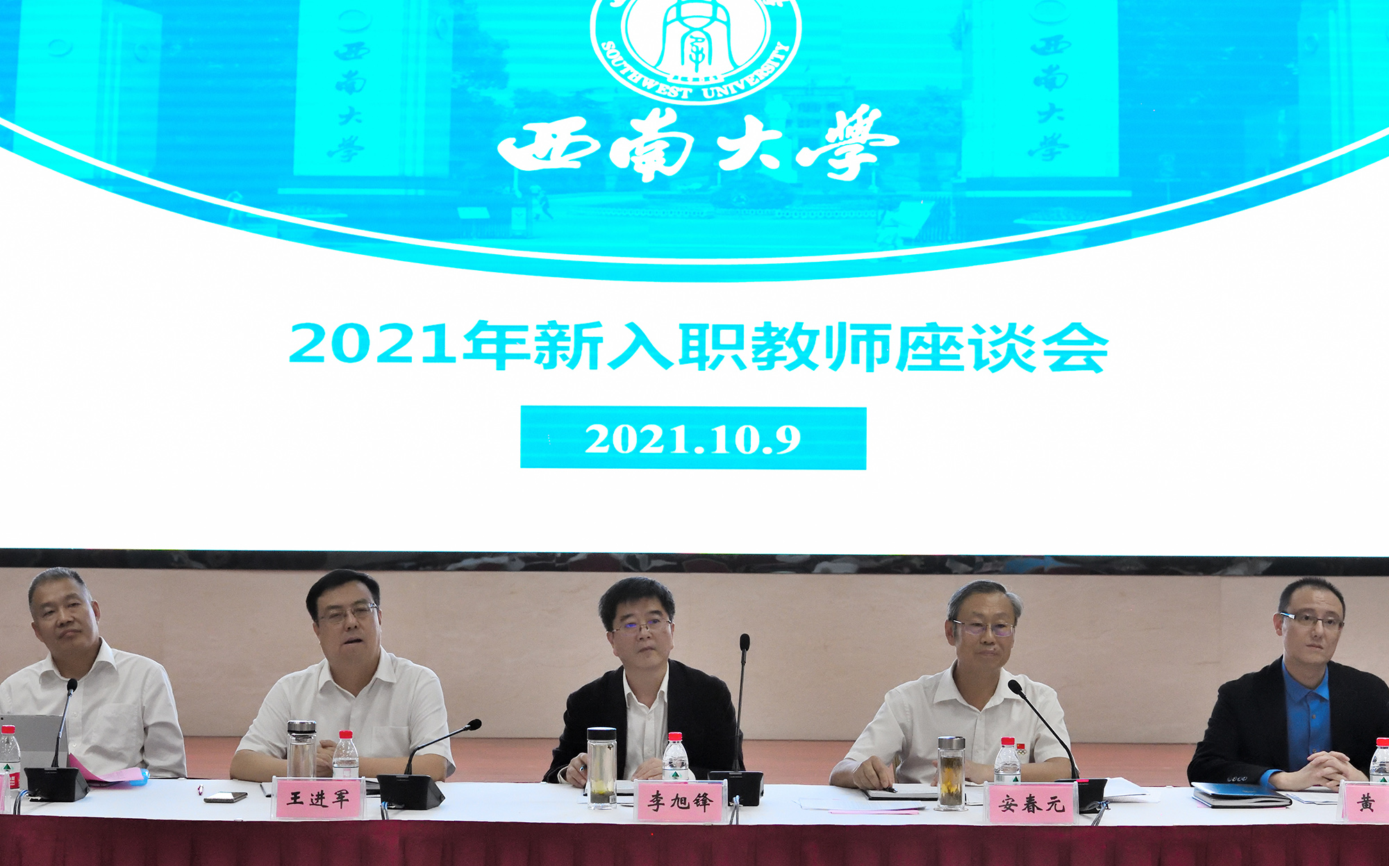 人才培养是高等学校的根本任务,师资队伍建设更是核心工作。对新进教师进行入职培训,是学校对师资队伍建设高度重视的体现,也是使新入校教师了解学校的校史、校情,尽快掌握高等教育教学的新理念和基本技能,顺利实现角色转变,提升师资队伍素质采取的重要举措。10月9日下午,学校在东方红报告厅举行2021年新入职教师培训座谈会。学校党委书记李旭锋、党委副书记安春元、副校长王进军出席,新进教师以及党政办公室、发展规划与学科建设部、人力资源部党委教师工作部、教务处、研究生院、教师教学发展中心、社会科学处、科学技术处、后勤保障部等职能部门负责人参加座谈会。座谈会由安春元主持。