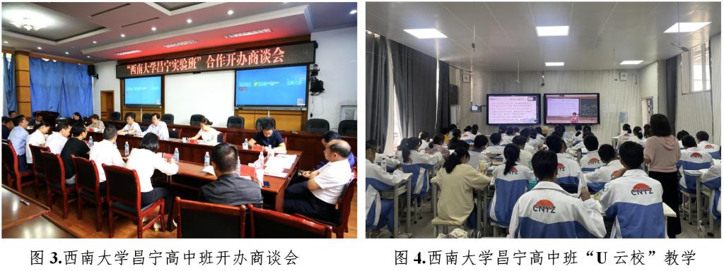 作为教育部直属的6所公费师范生招生高校,学校基础教育优势明显,学校附属中学教育品牌享誉西南。相较而言,昌宁县基础教育整体水平较弱,高中优质生源流失严重,教师教学观念和方法不适应新形势下的高中教育,全县高考一本上线率长期在10%左右低位徘徊。经昌宁县人民政府与学校充分沟通协调,决定依托昌宁县第一中学合办“437ccm必赢国际官方网站昌宁高中班”,共享学校附属中学“U云校”资源,让昌宁一中能够与学校附属中学开启“OMO”教育模式,实现教学资源共享和“双师型”课堂教学,创新教育帮扶模式,突破昌宁高中教育发展瓶颈。该班于今年9月1日正式开班,目前已招收2个班100人。“437ccm必赢国际官方网站昌宁高中班”的设立,对发挥学校附属中学品牌优势,探索普通高中学校小额优质班级管理新模式,推动教学改革,培养拔尖创新型人才,形成品牌效应,实现昌宁县高中教育内涵发展具有积极的促进作用。