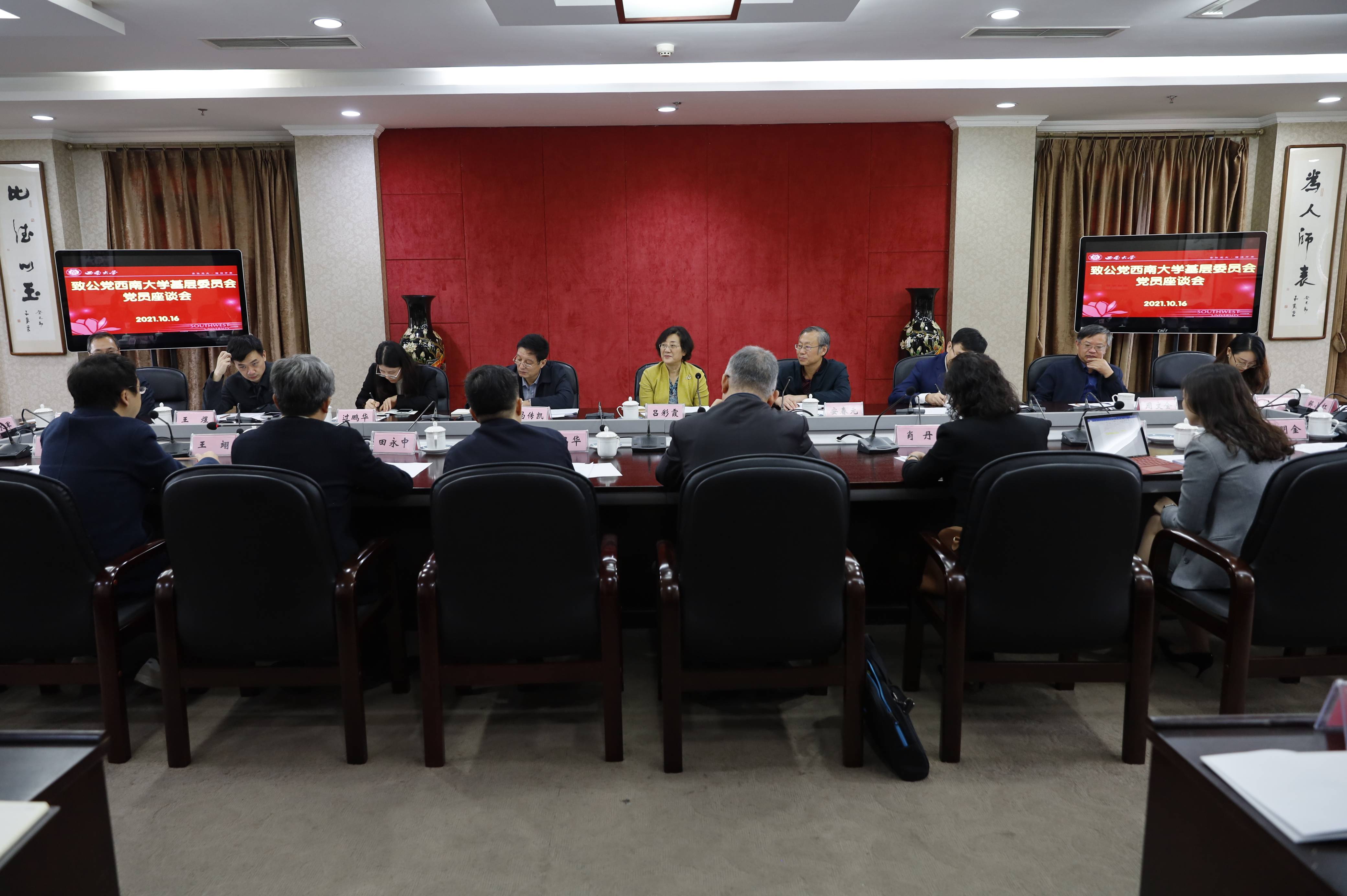 致公党重庆市委会副主委、学校侨联主席魏沙平,致公党北碚区委会主委、学校科技处处长胡昌华,致公党437ccm必赢国际官方网站基层委员会主委肖丹从思想政治工作、自身建设、参政议政、社会服务等方面作工作汇报。致公党党员代表田永中、王翊、胡琳、杨明金、邹祥进行发言。
