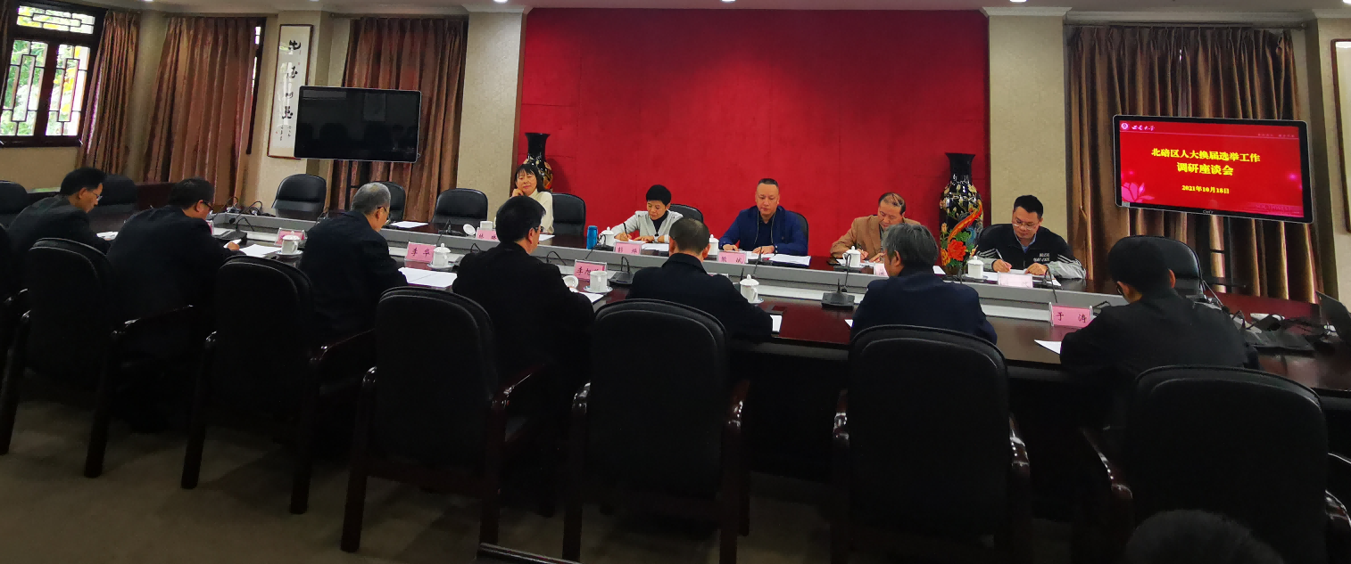 10月18日下午,北碚区人大换届选举工作调研座谈会在行署楼第五会议室举行。北碚区人大常委会党组书记、主任彭烨,学校党委书记李旭锋,党委副书记、纪委书记李华出席会议,党政办公室等相关职能部门负责人参加会议。会议由北碚区人大常委会人代工委主任熊斌主持。
