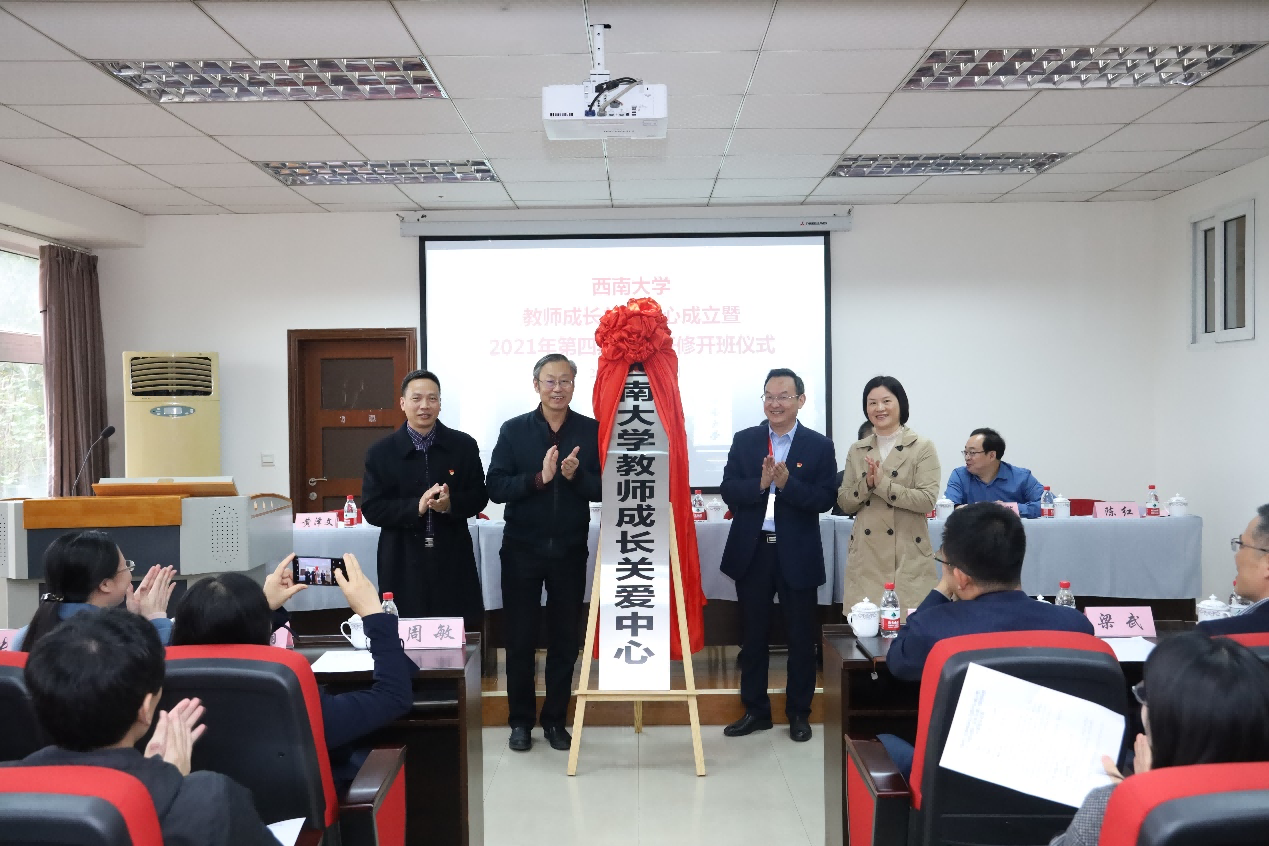 安春元在讲话中指出,学校党委高度重视教师工作,积极推动高素质、专业化、创新型教师队伍建设,由人力资源部 党委教师工作部和心理学部共同牵头组建教师成长关爱中心,是发挥学校优质资源,关注教师心理健康,增加教师职业认同感、使命感,落实立德树人根本任务,为全体教职工办实事的一项重大举措。心理学部是学校双一流建设学科,有一支强大的专业队伍,可以为老师们提供专业的支持、专门的服务,帮助老师们成长发展。学校发展到了关键时期,希望老师们始终保持健康的心理,强健的体魄,把人生目标定高一点,把人生格局定大一点,立德树人、争做新时代有“四有”好老师。同时希望即将前往井冈山参加第四期国情研修班的老师们深入了解国情、民情,拓展视野,加强交流,提升素养,并预祝研修活动顺利。