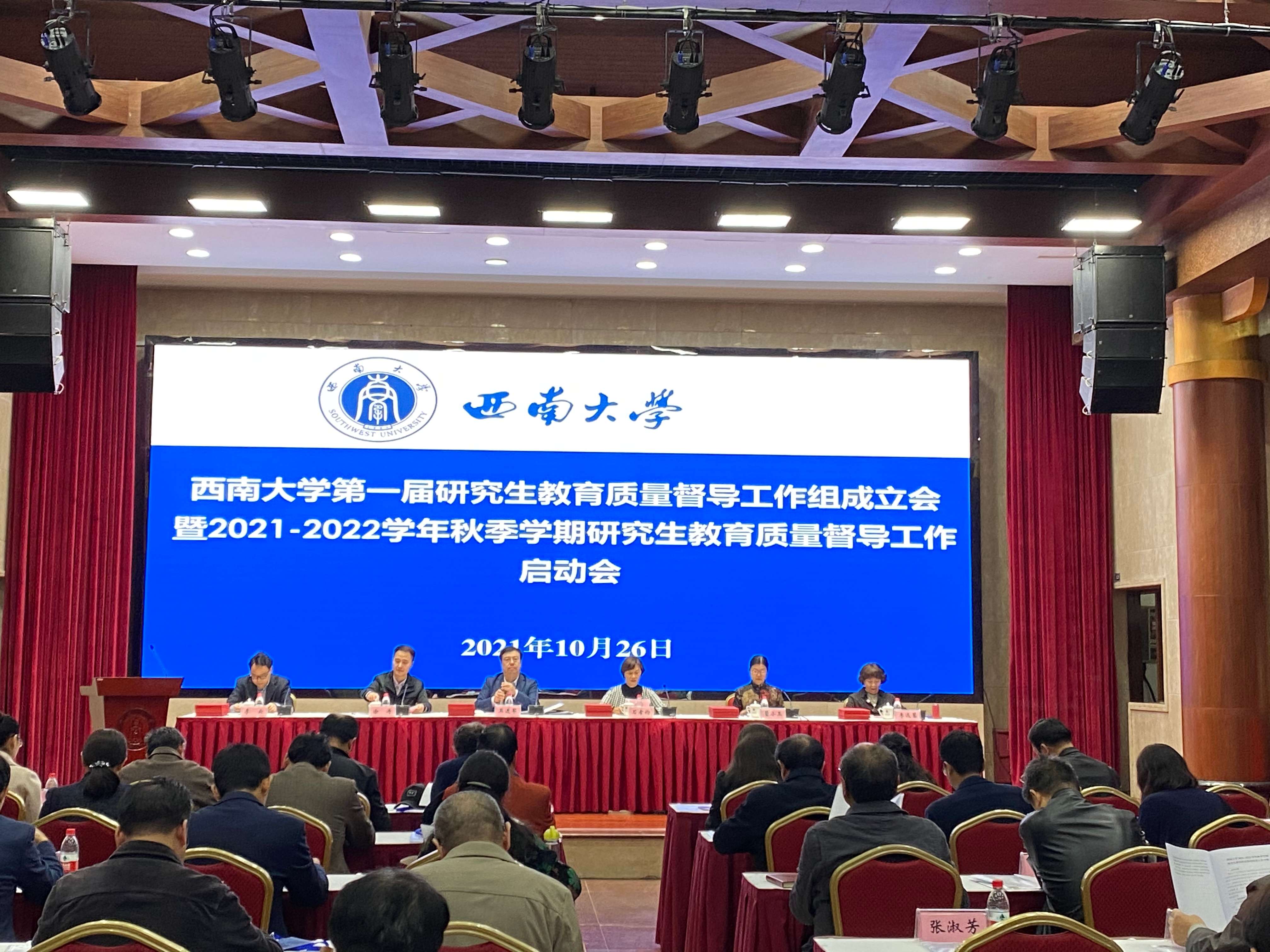 10月26日下午,学校第一届研究生教育质量督导工作组成立会暨2021-2022学年秋季学期研究生教育质量督导工作启动会在437ccm必赢国际官方网站东方红会议厅召开。会议旨在贯彻全国研究生教育会议精神,加强研究生培养质量的监督管理,健全研究生教育质量监督体系,助力研究生教育高质量发展,走上教指委领航、督导组护航的高质量发展道路,在“督教”“督管”“督学”与“导教”“导管”“导学”方面切实发挥作用。